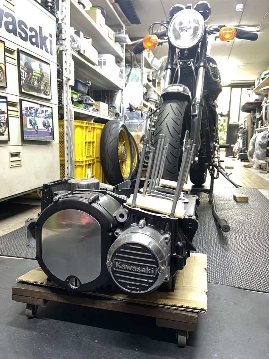 ヘッドとシリンダーの加工がそろそろ終わるころなので、エンジン腰下の準備を進めておきます。エンジンはセラコートし、ノーマルと同じ部分をポリッシュ仕上げにしてあります。