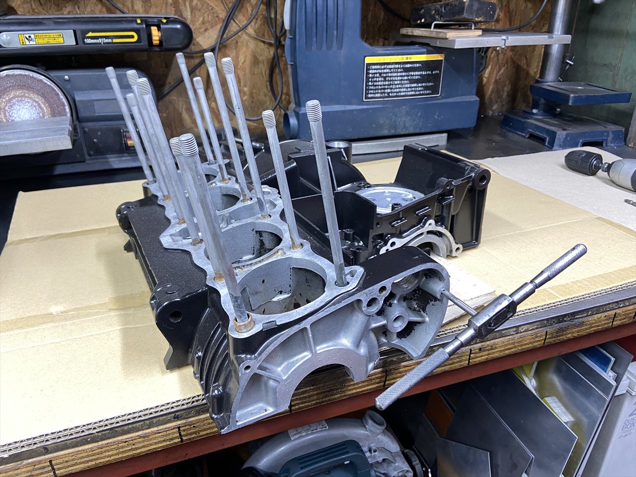 バフ仕上げも同時に施工しています。エンジンはこのあとスリーブ交換とシリンダーボーリングを施工します。