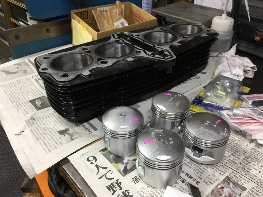 この、サイドスタンドブラケット周辺のフレームの変形は、思いの外ダメージが大きかったようで、左前と左下のエンジンマウントが大きくズレています。