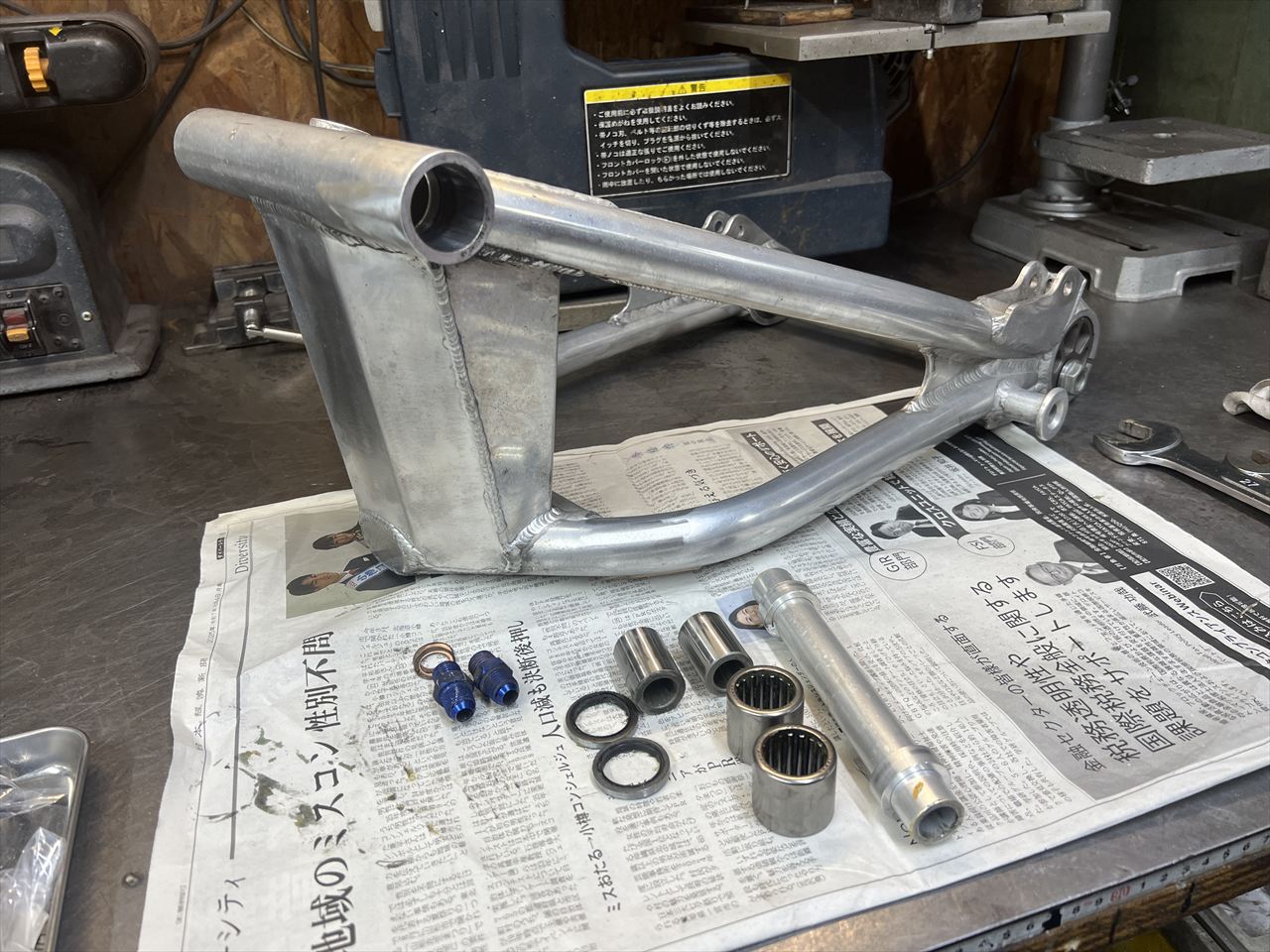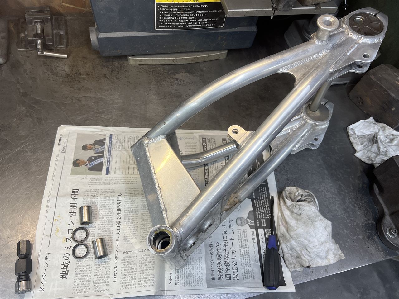 この状態で入手したというS1レプリカスイングアームをレストアします。