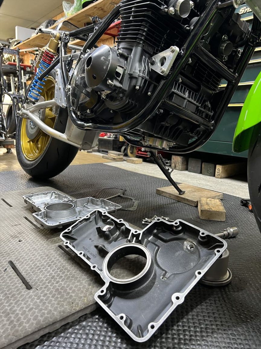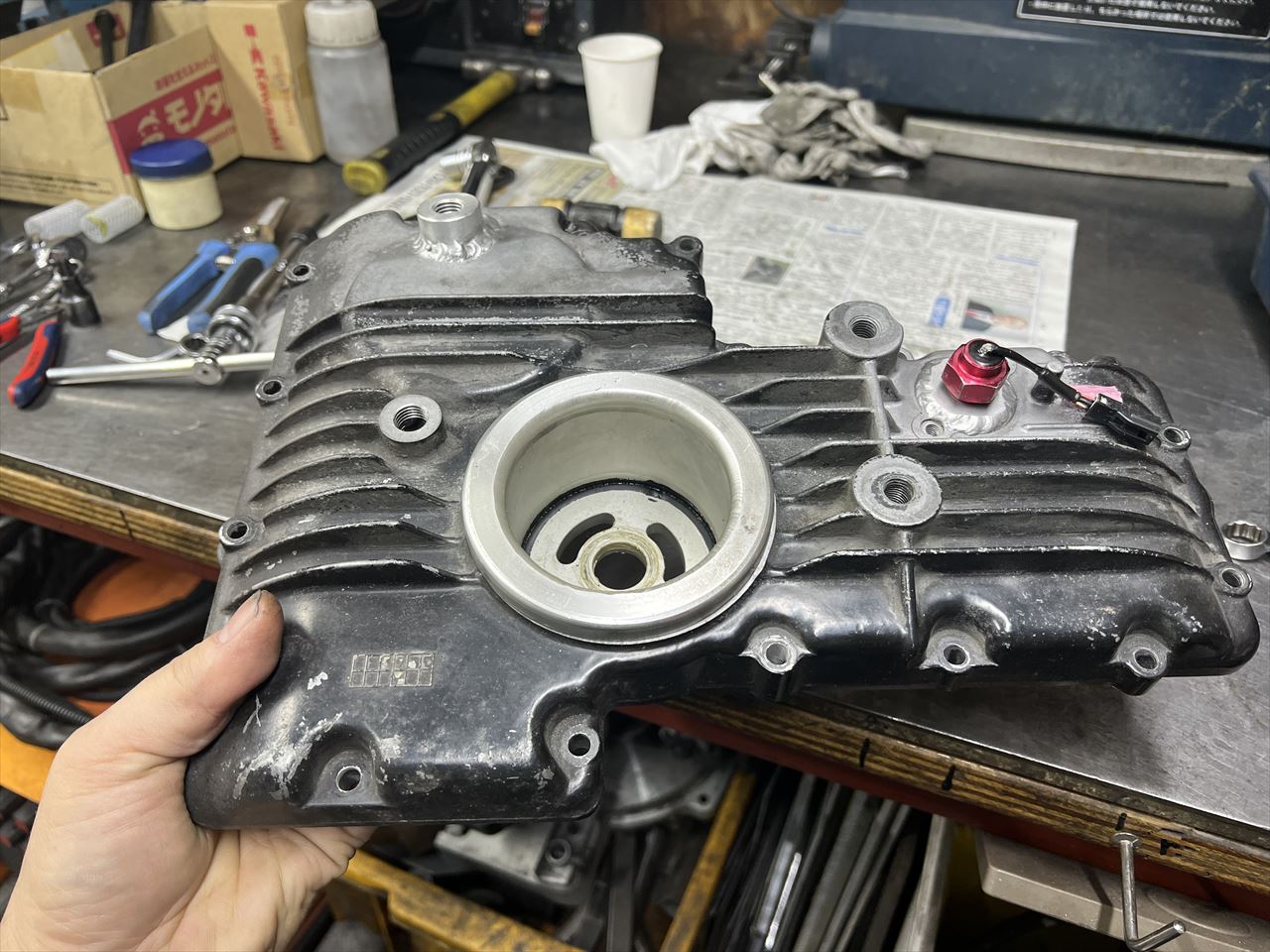 お持ち込みのオイルパンに合わせてみます。他にも改造ヶ所がいくつかあります。