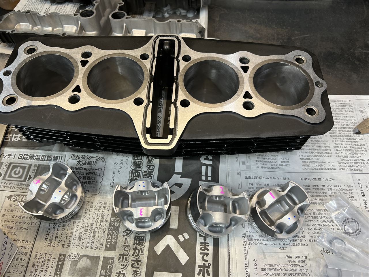 シリンダーのボーリングが完成したので組み付けます。