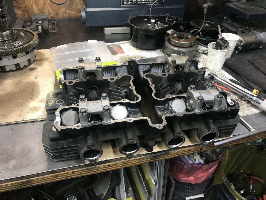 バルブシート周りに不審な加工痕があったのでヘッドは交換することにしました。ストックのへっどから、適したものを選びます。