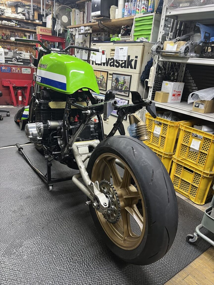 不要なブラケット類は削除しますが、チェーンガイドローラーの付いているセンスタブラケットは残しておきます。