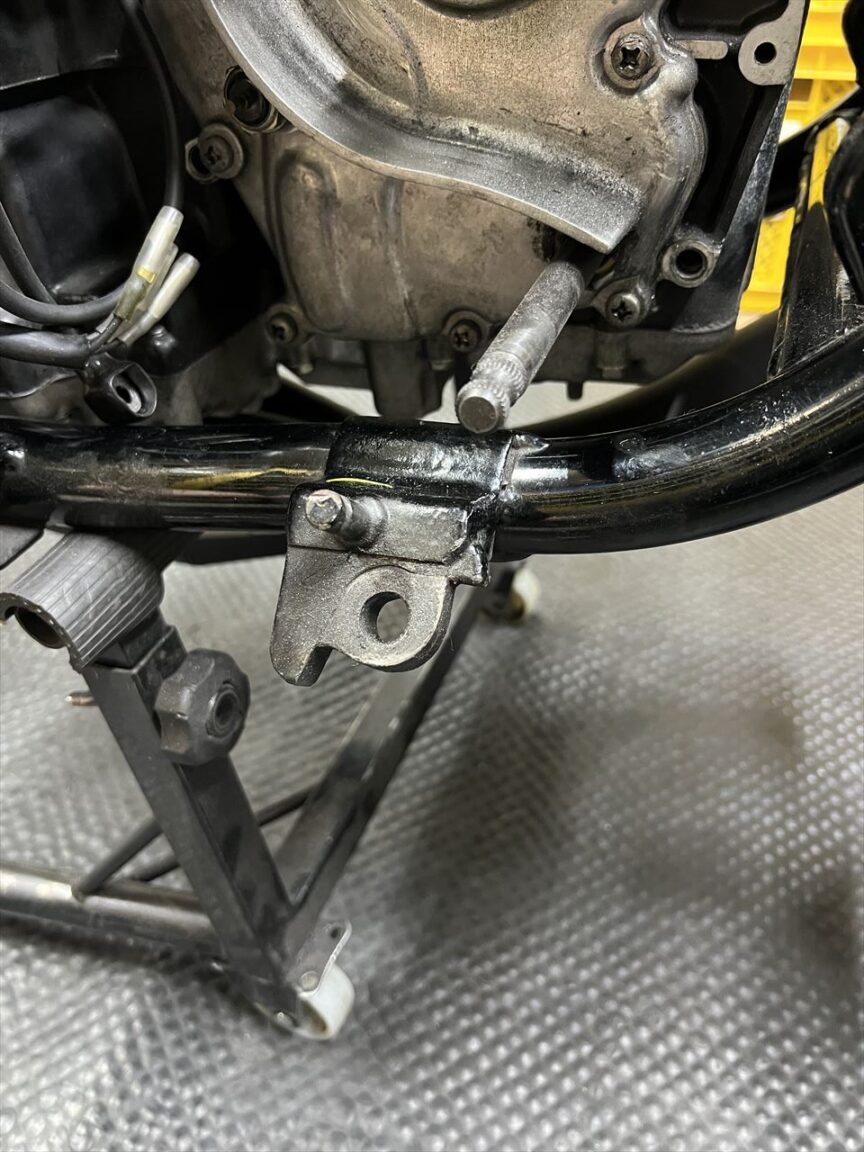 サイドスタンドは脱着式にするので、ノーマルのブラケットは削除します。