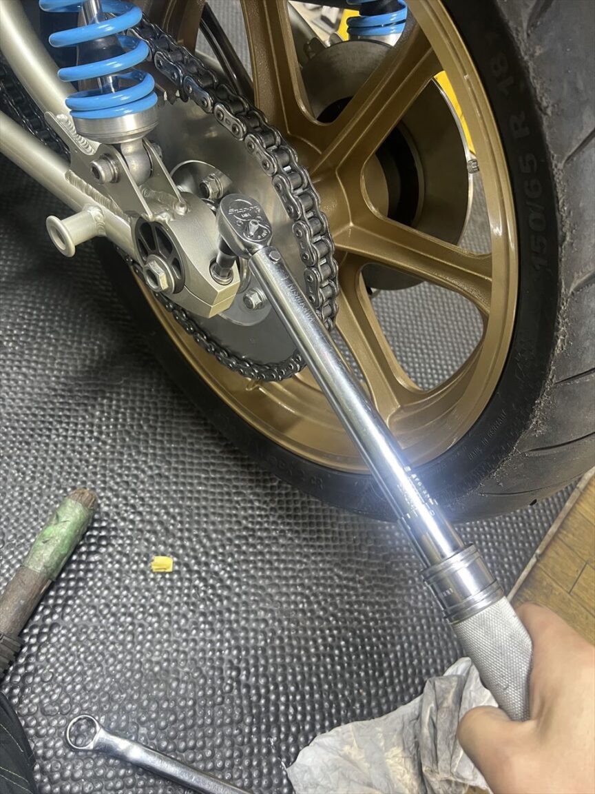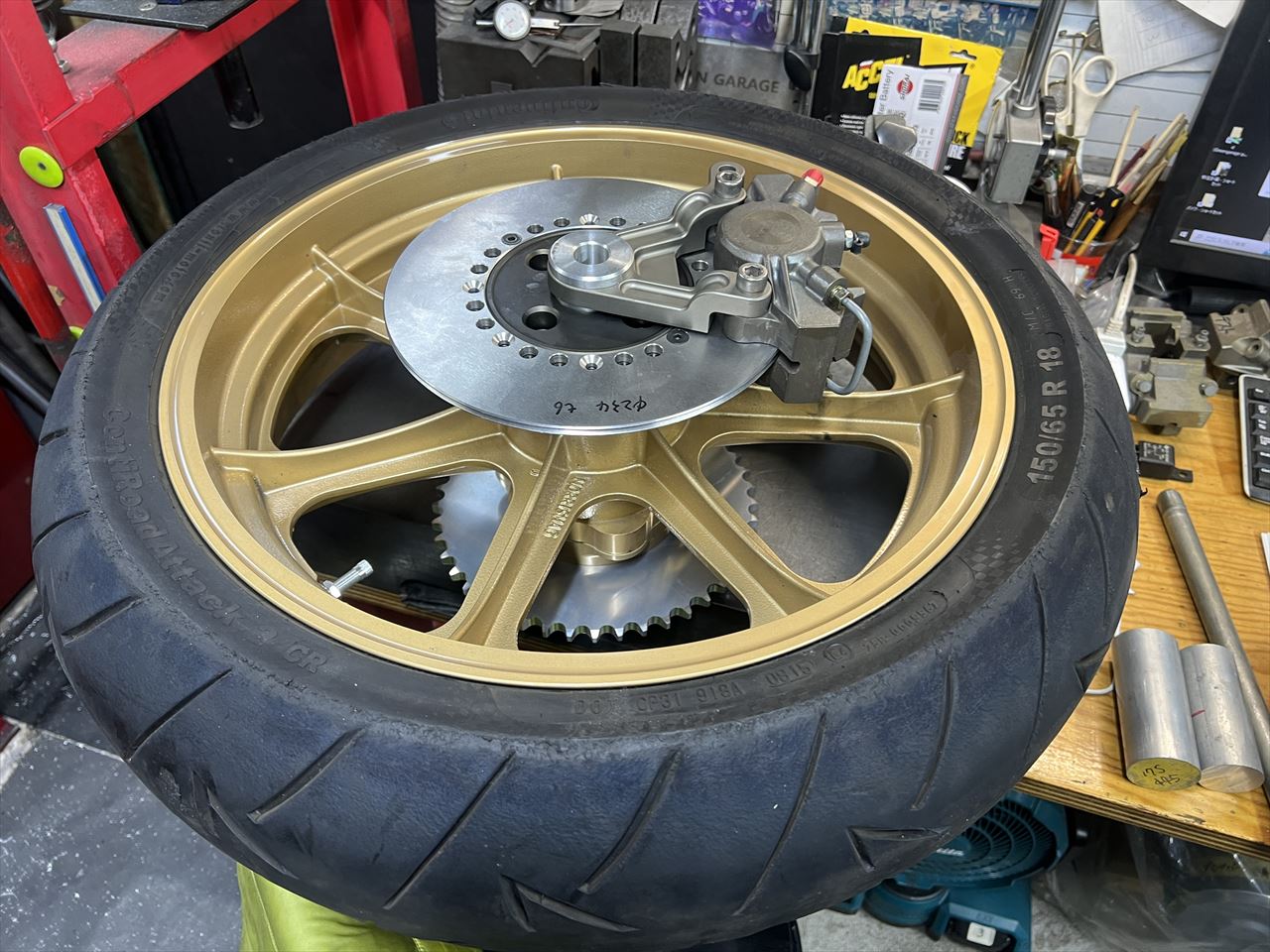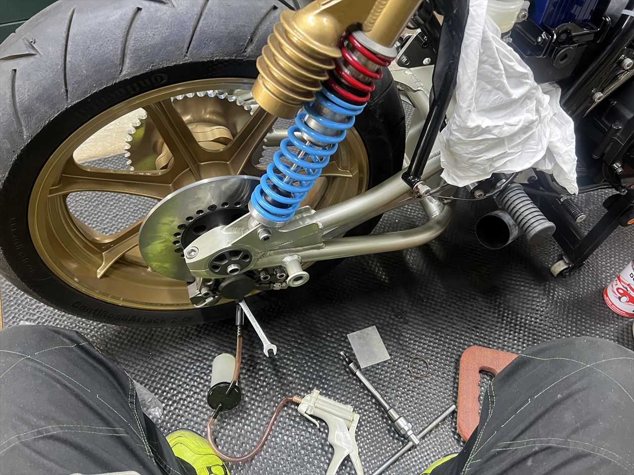 リヤホイールのカラーを交換したS1スイングアームに合わせて製作します。