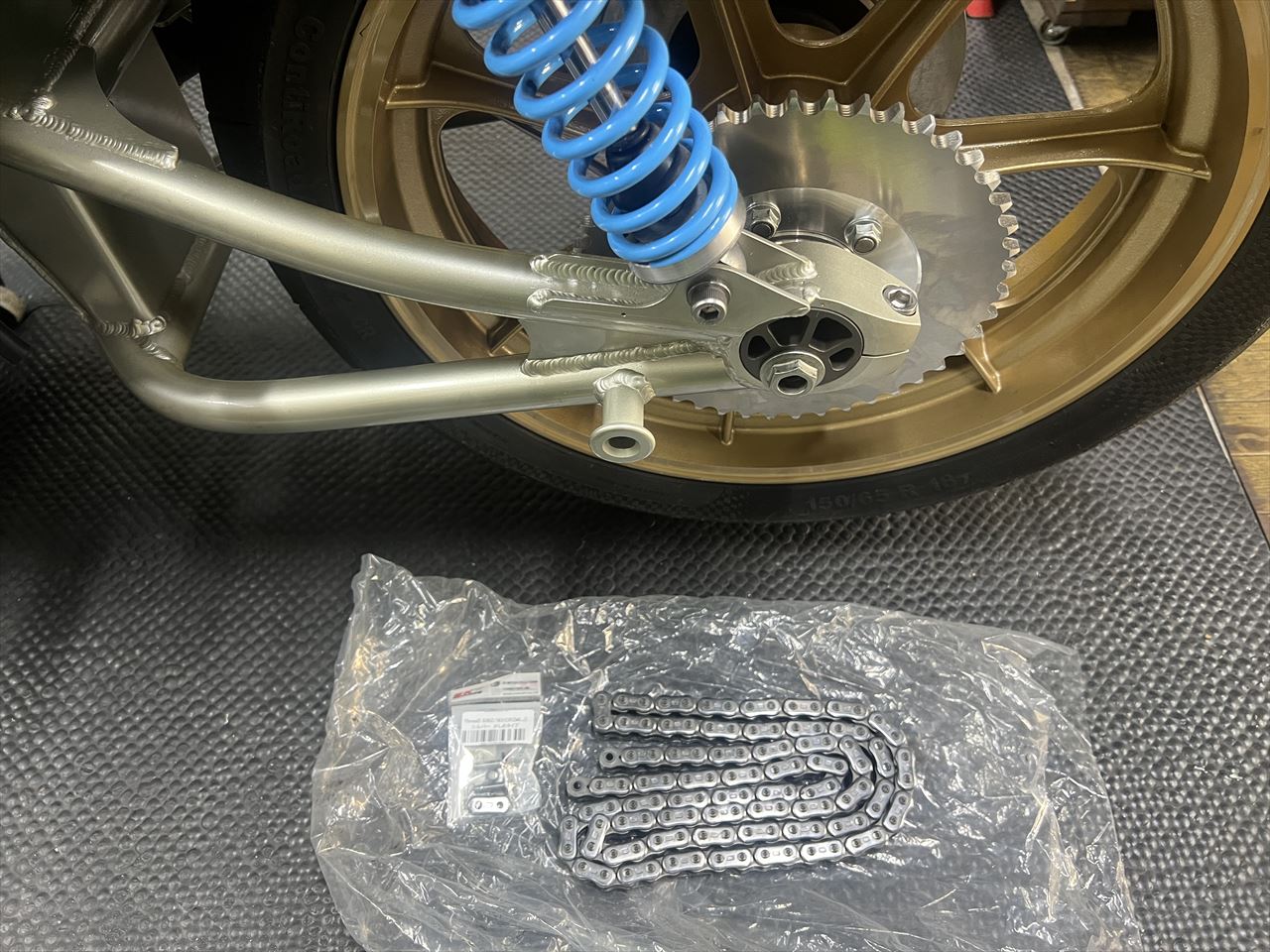 チェーンジョイントが入荷したので外してあった既存のチェーンを取り付けます。チェーンはEKのスリードです。