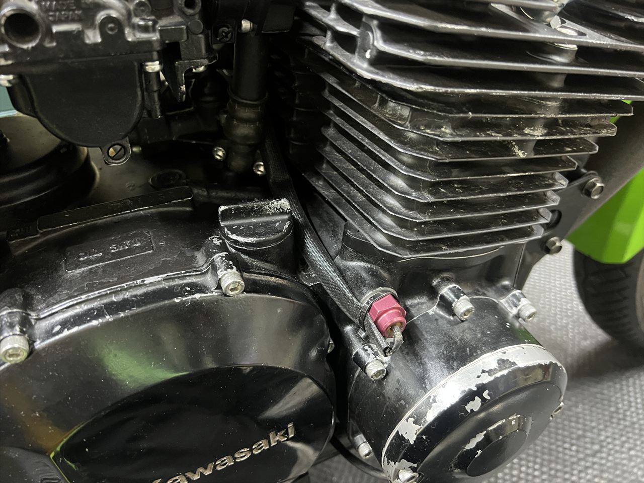 油温センサーの配線は、前方回しからエキパイ熱の影響を避けてシリンダー後方立ち上げに変更、配線保護には耐熱性の高いシリコンガラス編み組みチューブを使います。