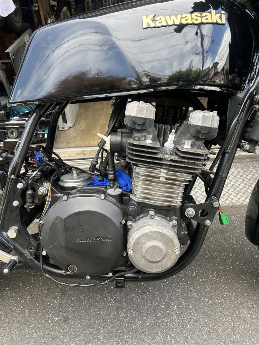フレームはB2ですが、クランクケースはB1、ヘッドはB2と、それぞれ別々に入手したものとのことで、エンジンは仮組された状態です。