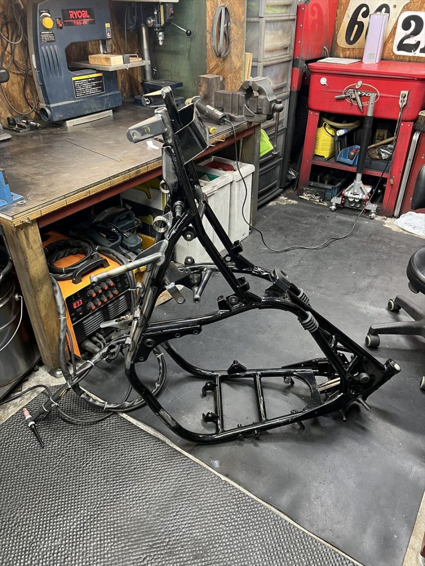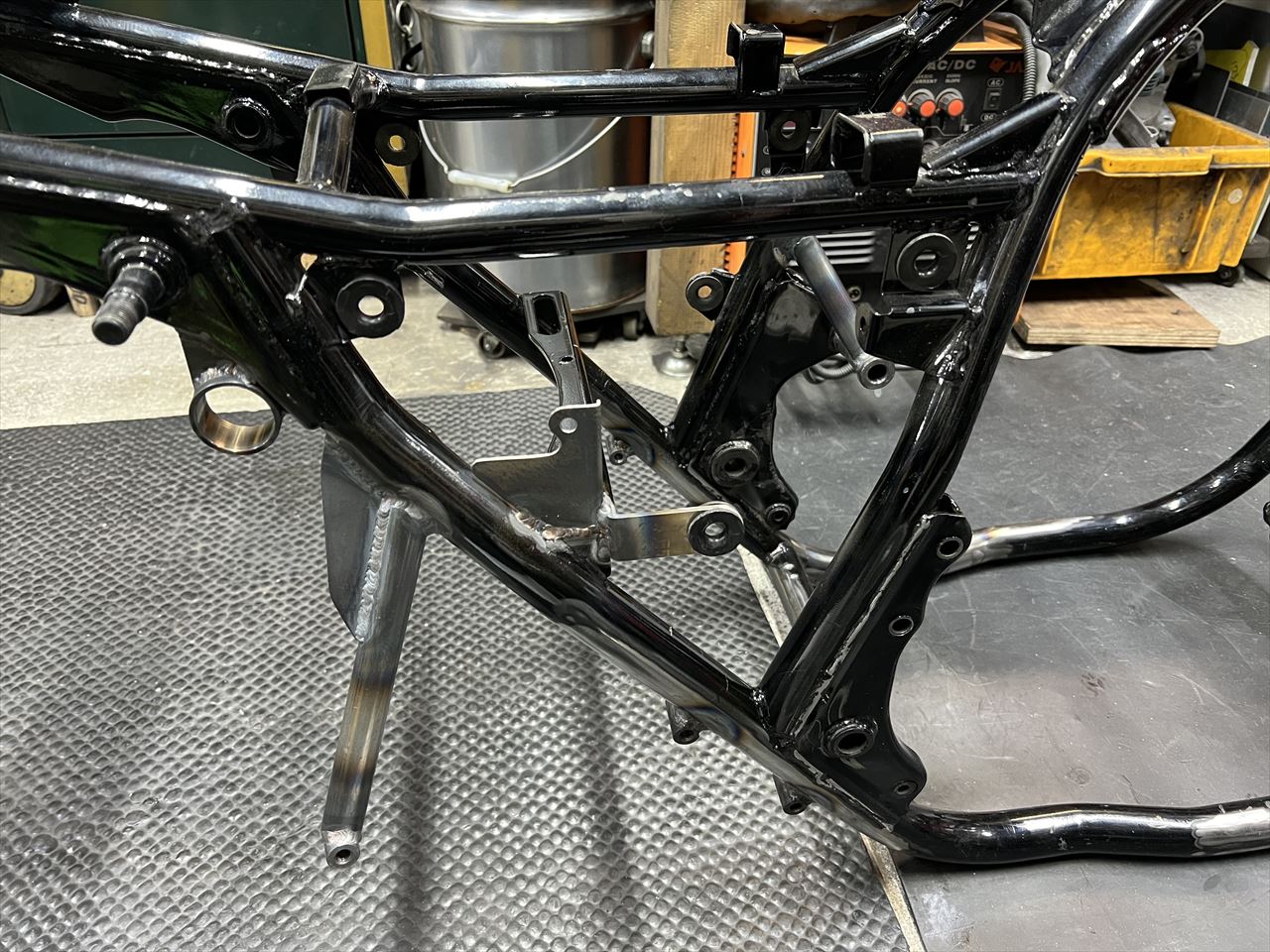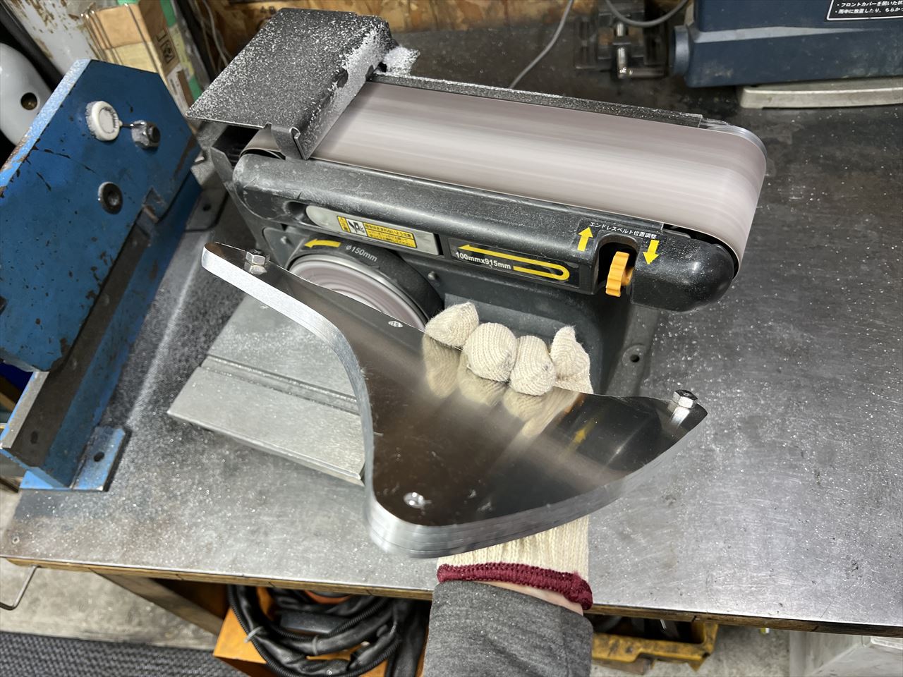 右のサイドカバー下側ステーを製作し、溶接します。