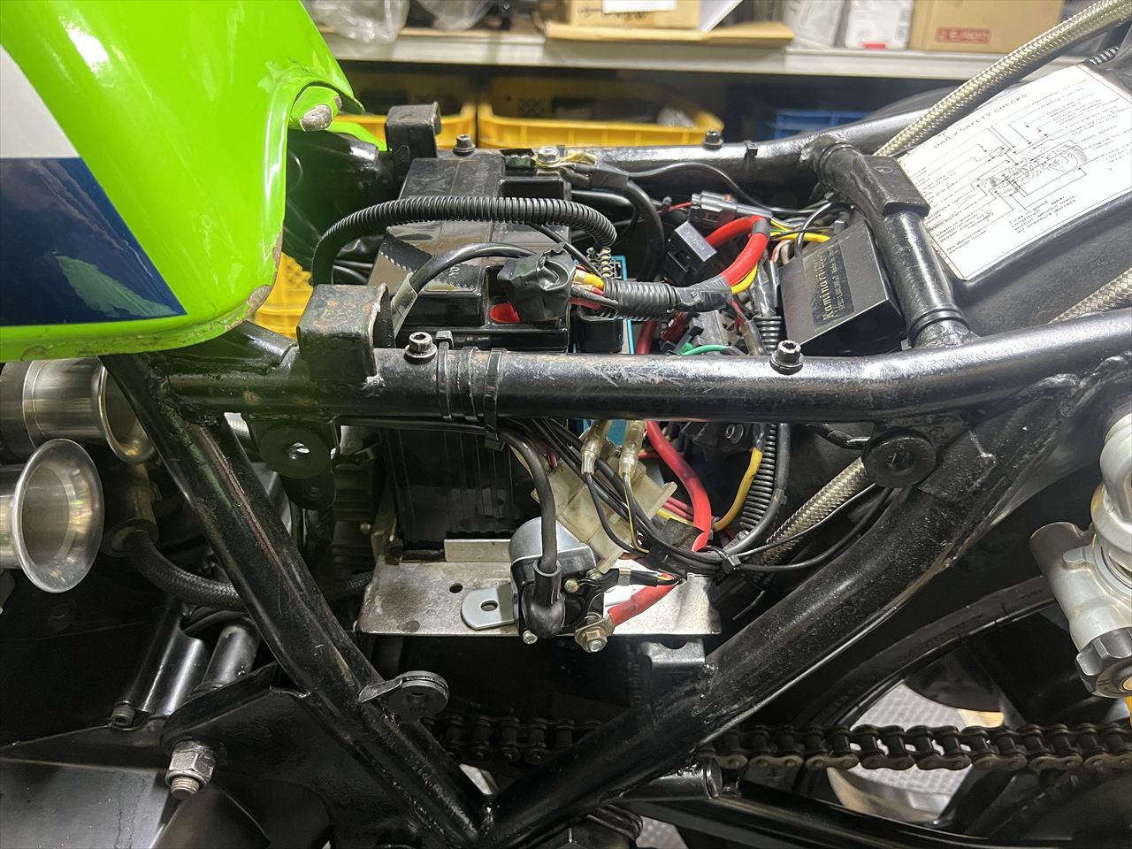 予め予備点検を実施し、ハーネスの改造部分が広範囲に渡って施されていることを確認。あまりにも回路が複雑になっており、故障探求に時間がかかる状態でした。なのでメインハーネスを交換し、電装系を全て見直すことになりました。
