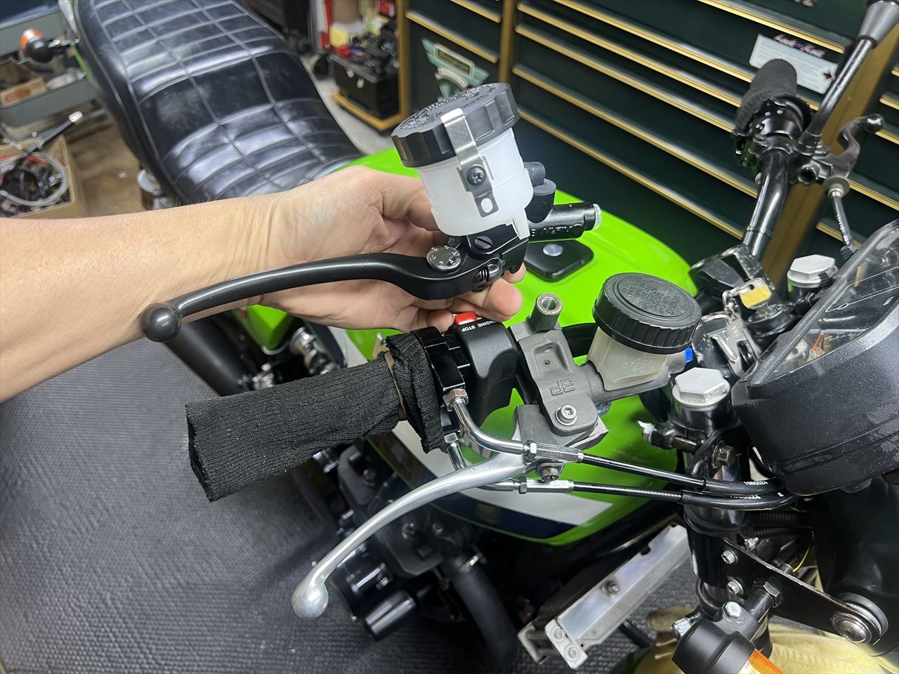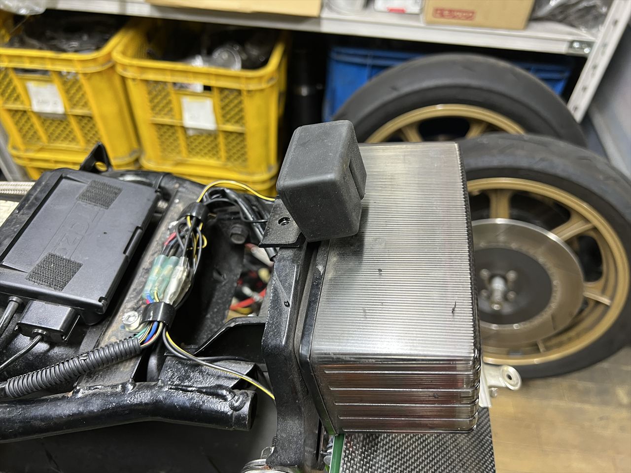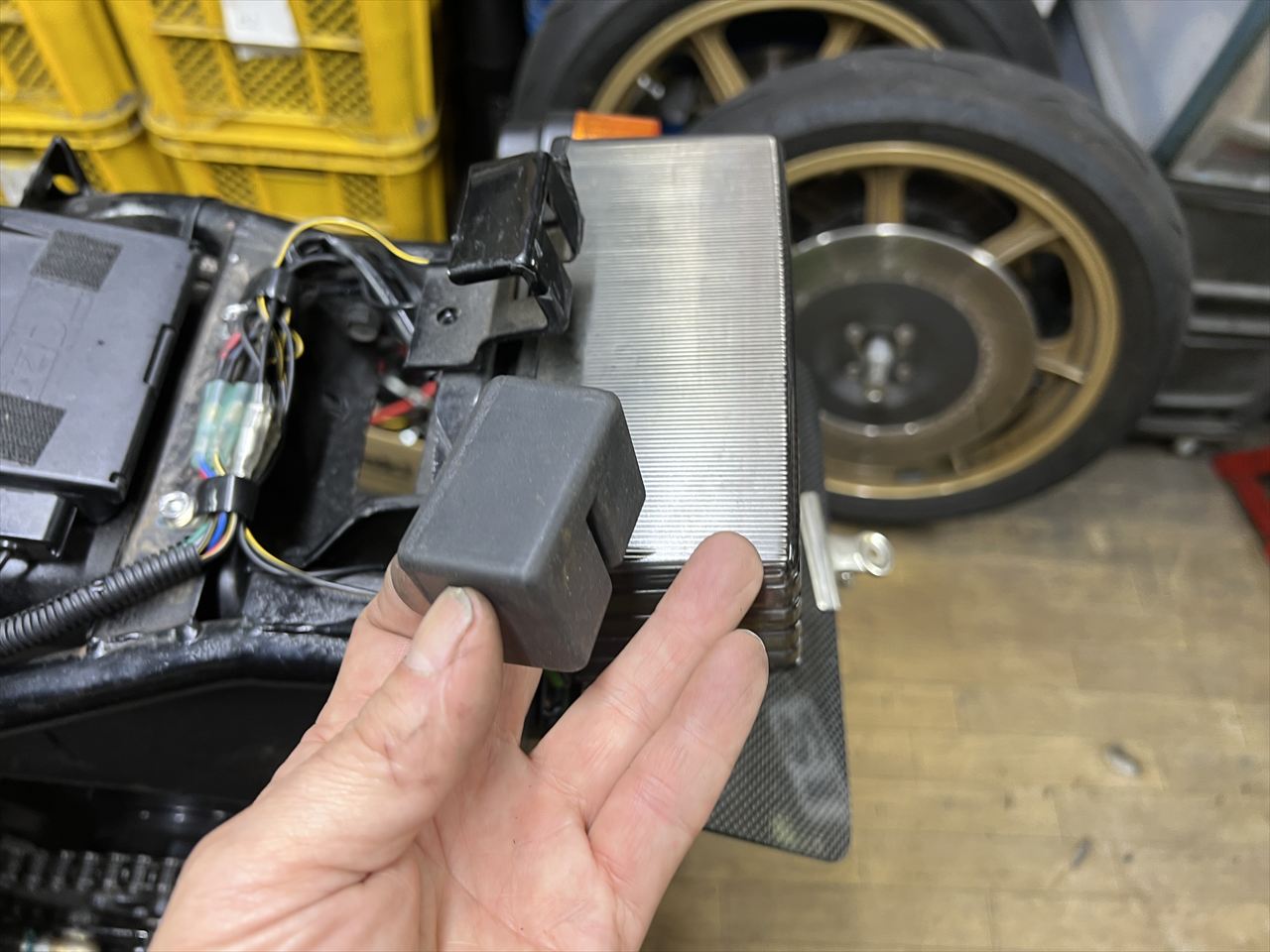 走行開始からしばらくすると、毎回原因不明のヒューズ切れが起きるとのことで修理します。合わせて、かなりプルバックされたハンドル周りも、R2ステムを使ってスタンダードに戻します。