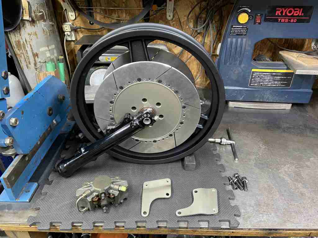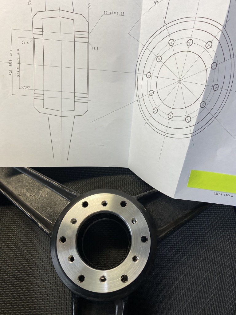 S1足回りキットの仕上げです。フロントキャリパーサポートの取り付けピッチを修正します。