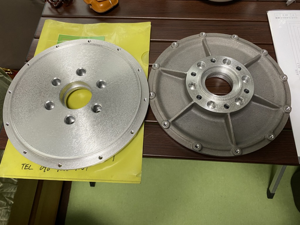 フロントは弊社のS1ローター仕様にするにあたり、ラージハブのように大きくくりぬくタイプとしました。ローター取り付けのPCDも変更しています。左右とも同じ形状。ホイールベアリングはS1同様インナーローター側に設置します。
