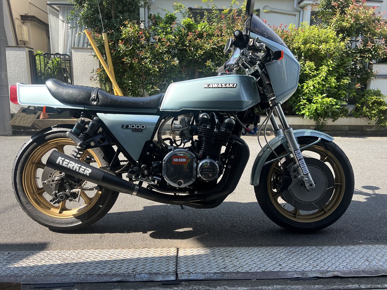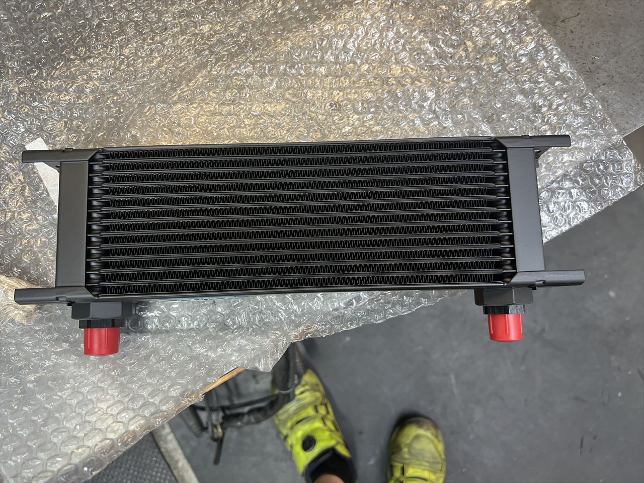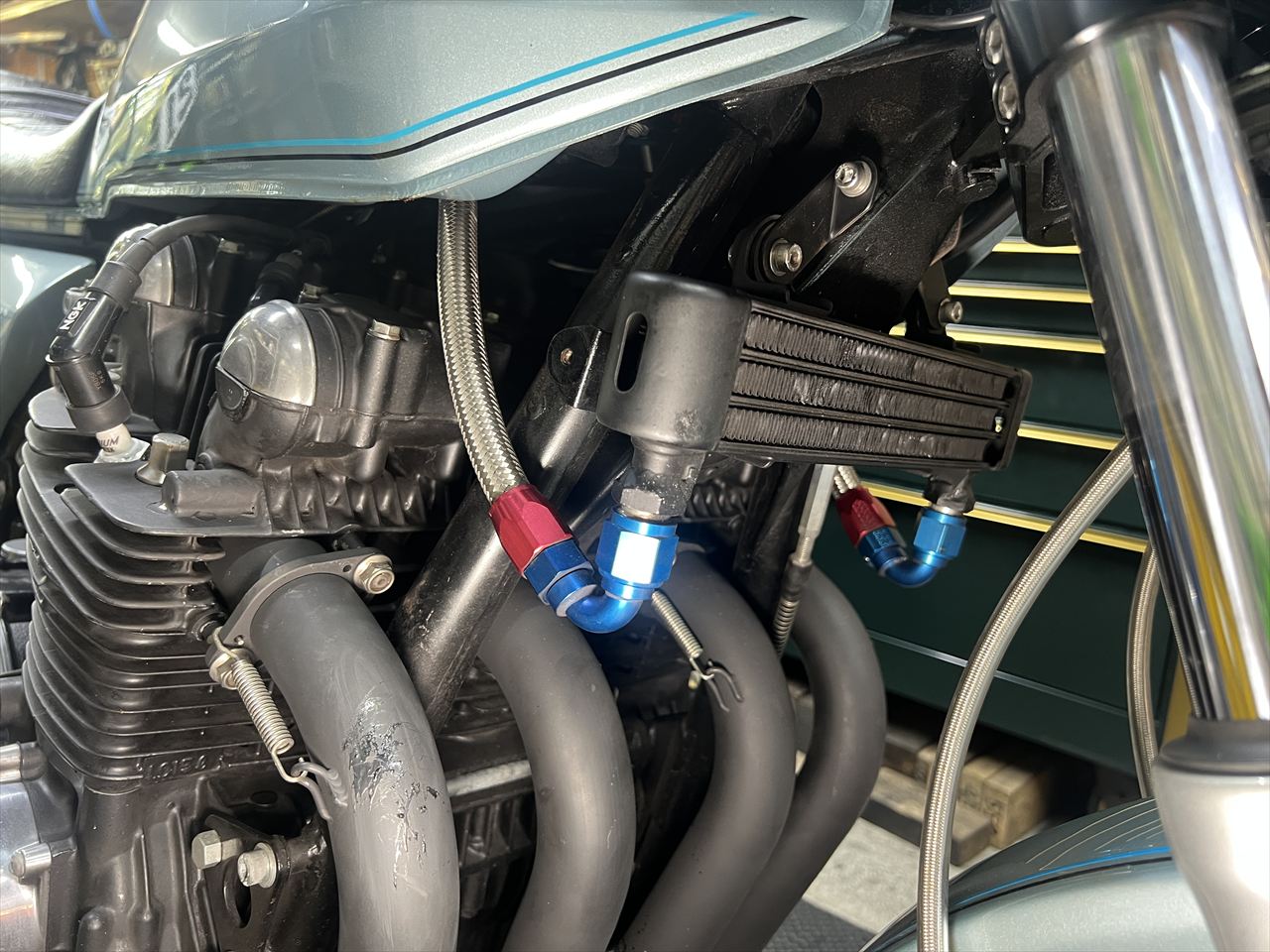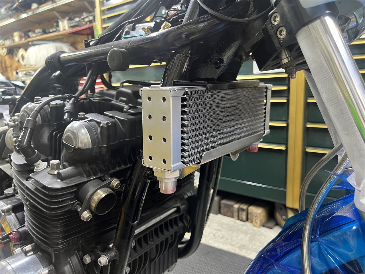 既存のZ1000R改オイルクーラーコアから、ワークスタイプのブラケット+9インチ13段コアへ仕様変更します。