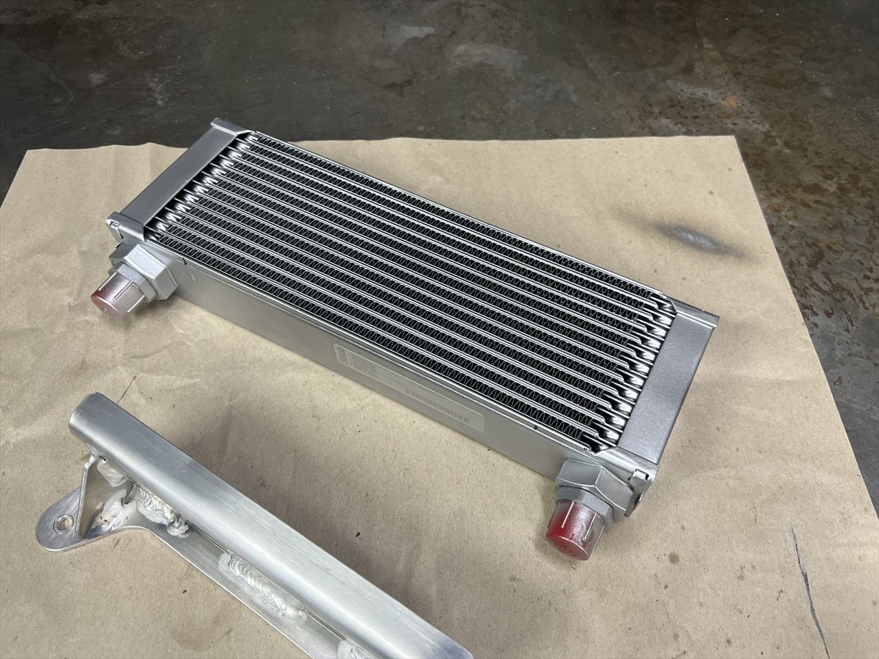 ワークスオイルクーラー取り付けの続きです。ロアーブラケットをアルミ板溶接で作ります。これはワークスS1仕様と共通です。