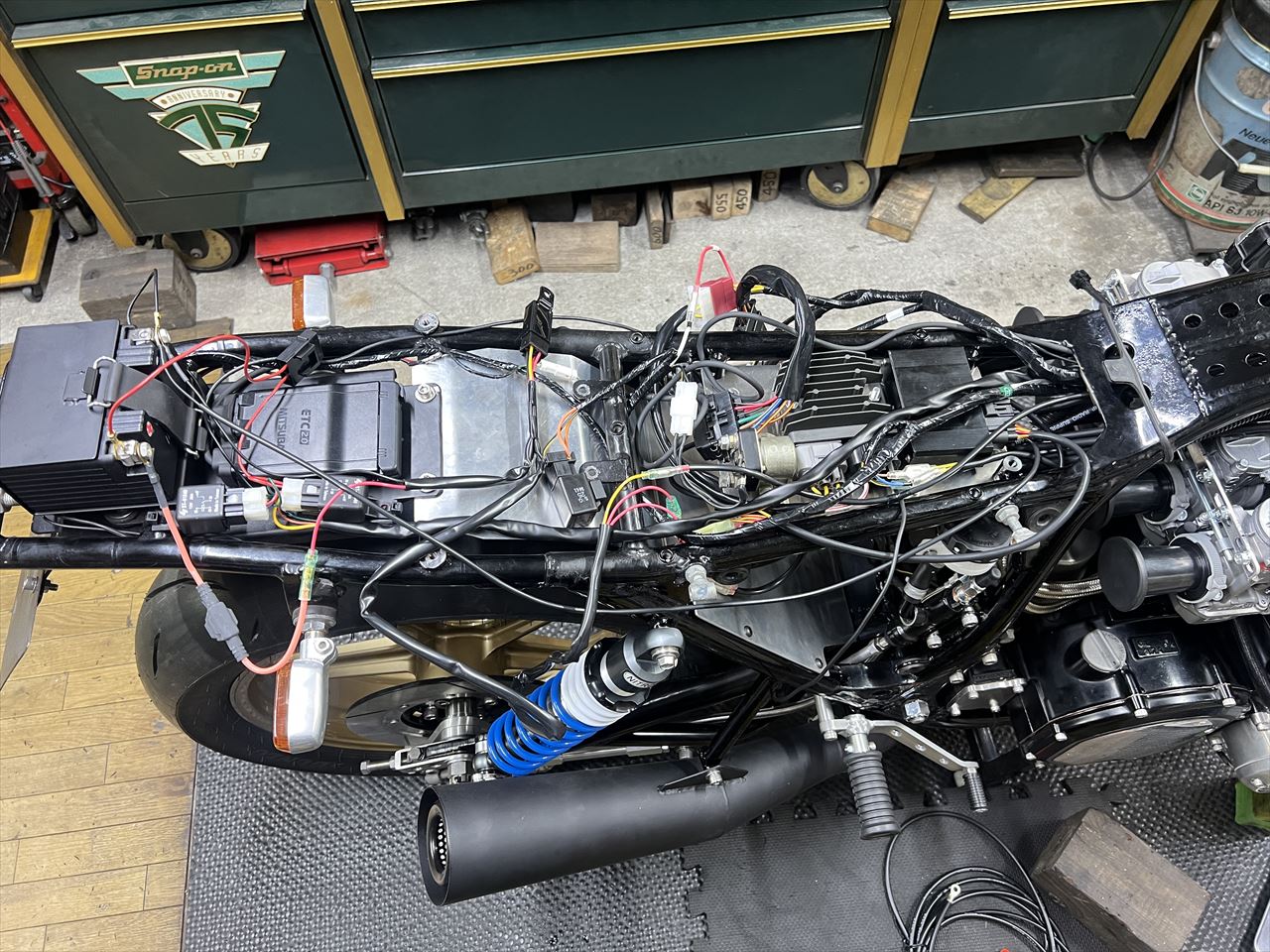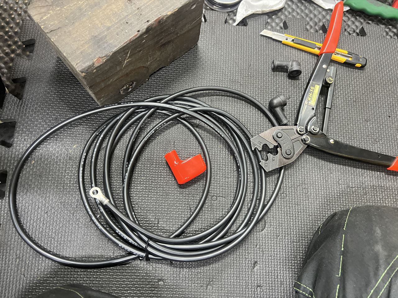 バッテリーはテールカウルに設置するため、バッテリーケーブルは太いシリコン被服のものを使います。