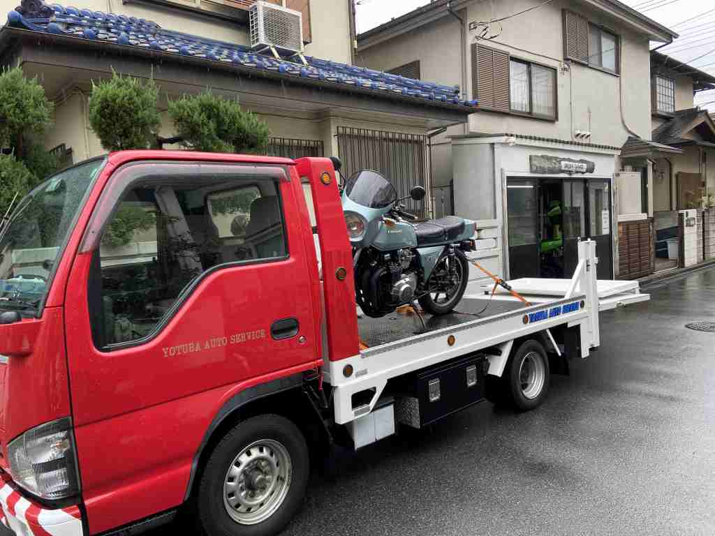 前回の「最低限整備」に続き、今回はよりよい状態へのステップアップの整備です。不動なのでレッカーサービスを利用してのお持ち込みとなりました。