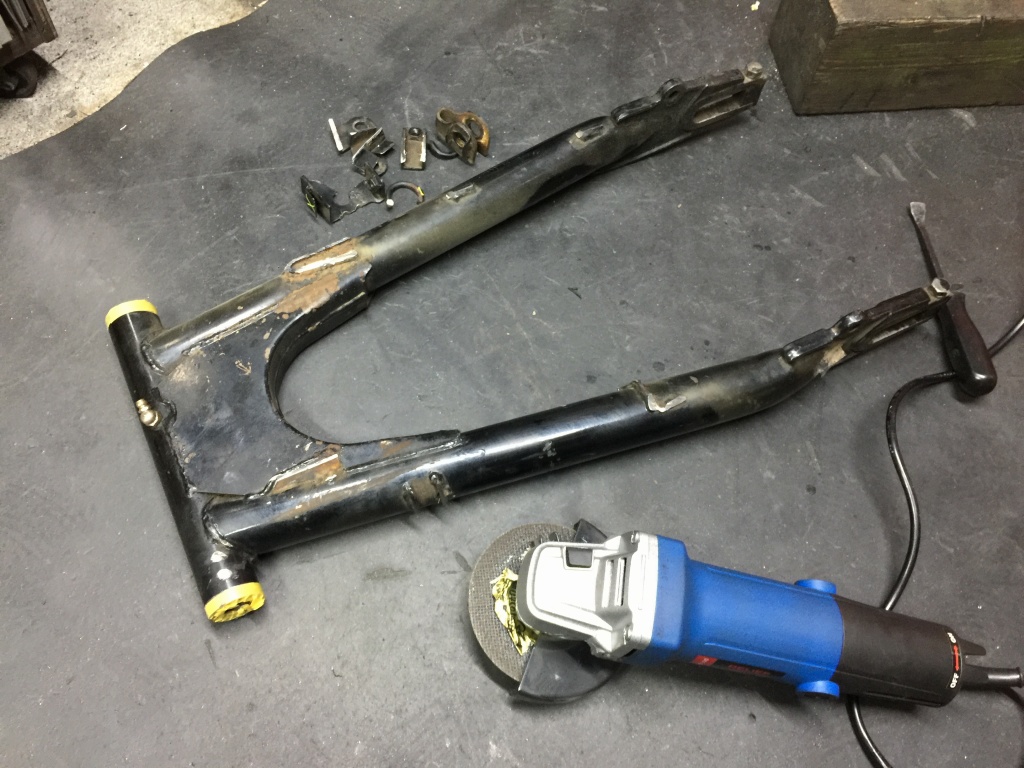 先ずは、ドナーのノーマルスイングアームから、不要なステーを削除します。