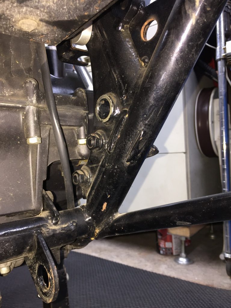 今回、リヤブレーキはノーマルペダルに戻しますが、フレーム側のペダル軸は削除されてありません。
