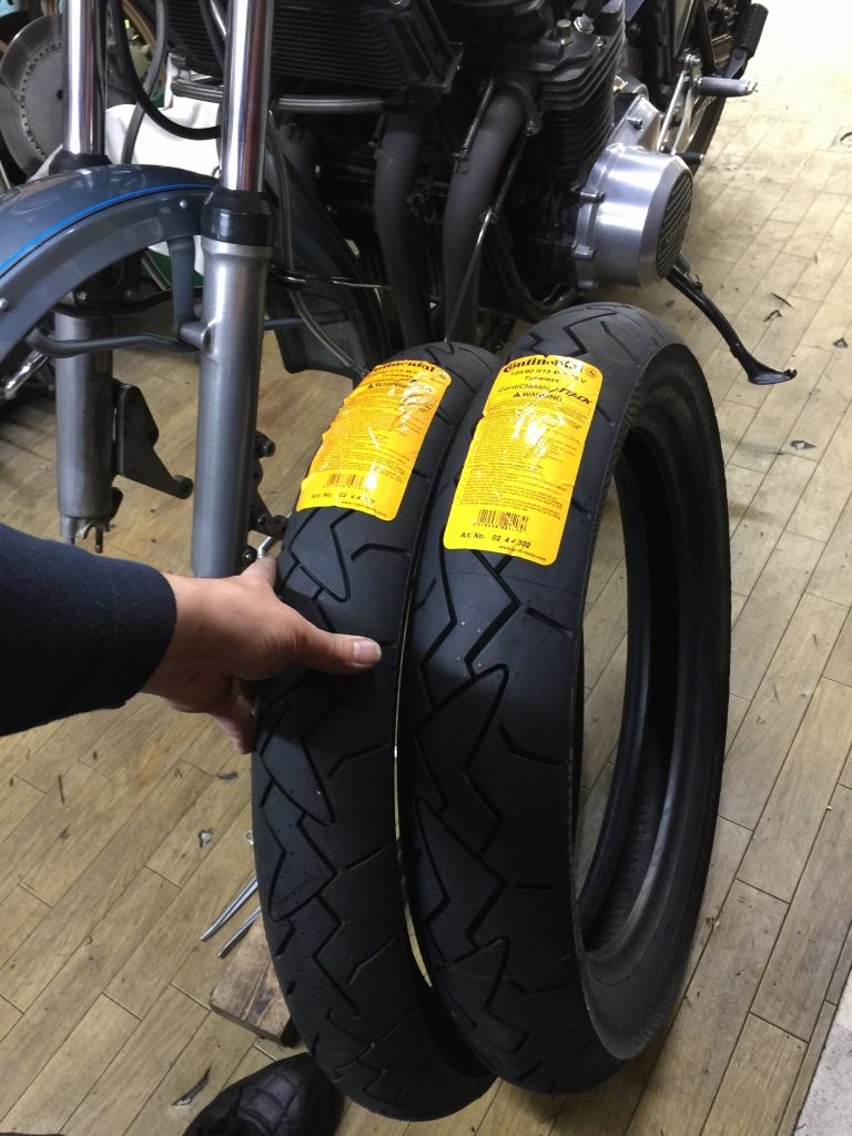 タイヤが摩耗したので、19インチラジアルで定評のあるコンチクラシックアタックに交換します。