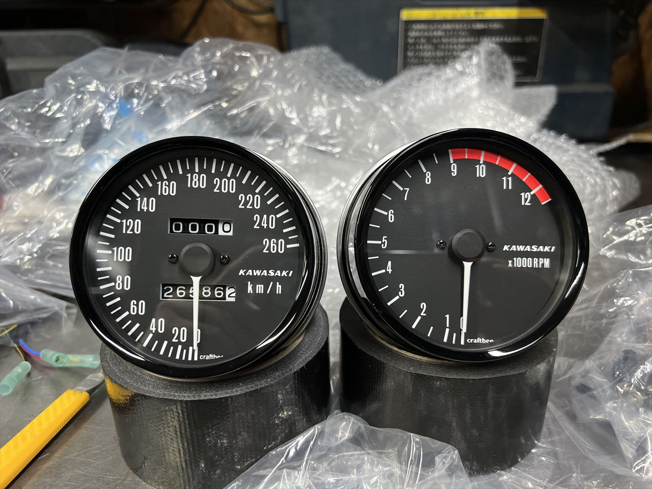 既存の純正メーターのオーバーホールが完成しました。施工していただいたのは岡山のクラフトビーさんです。オーナーさんのご希望で、デザインは下振りのカスタム仕様です。