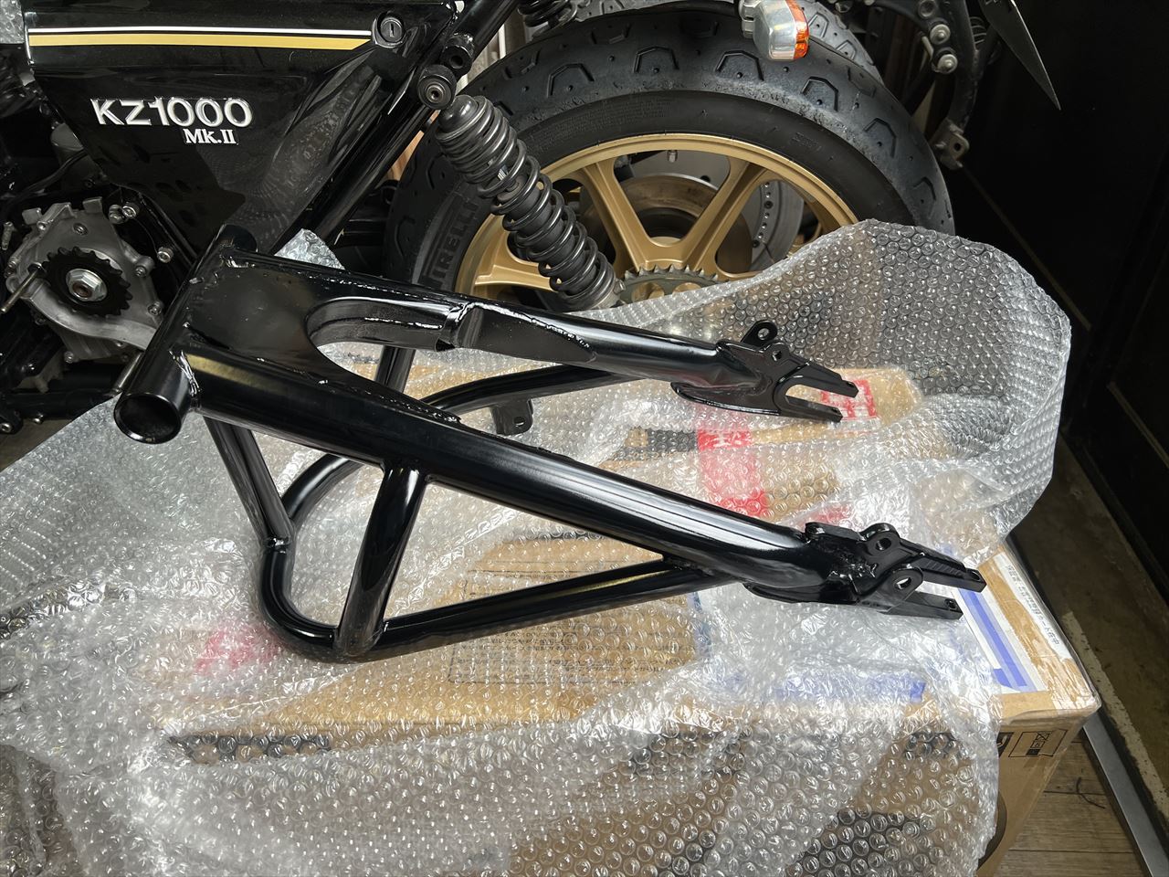 ワークストラスタイプスイングアーム、純正を改造して塗装に出していましたが上がってきました。