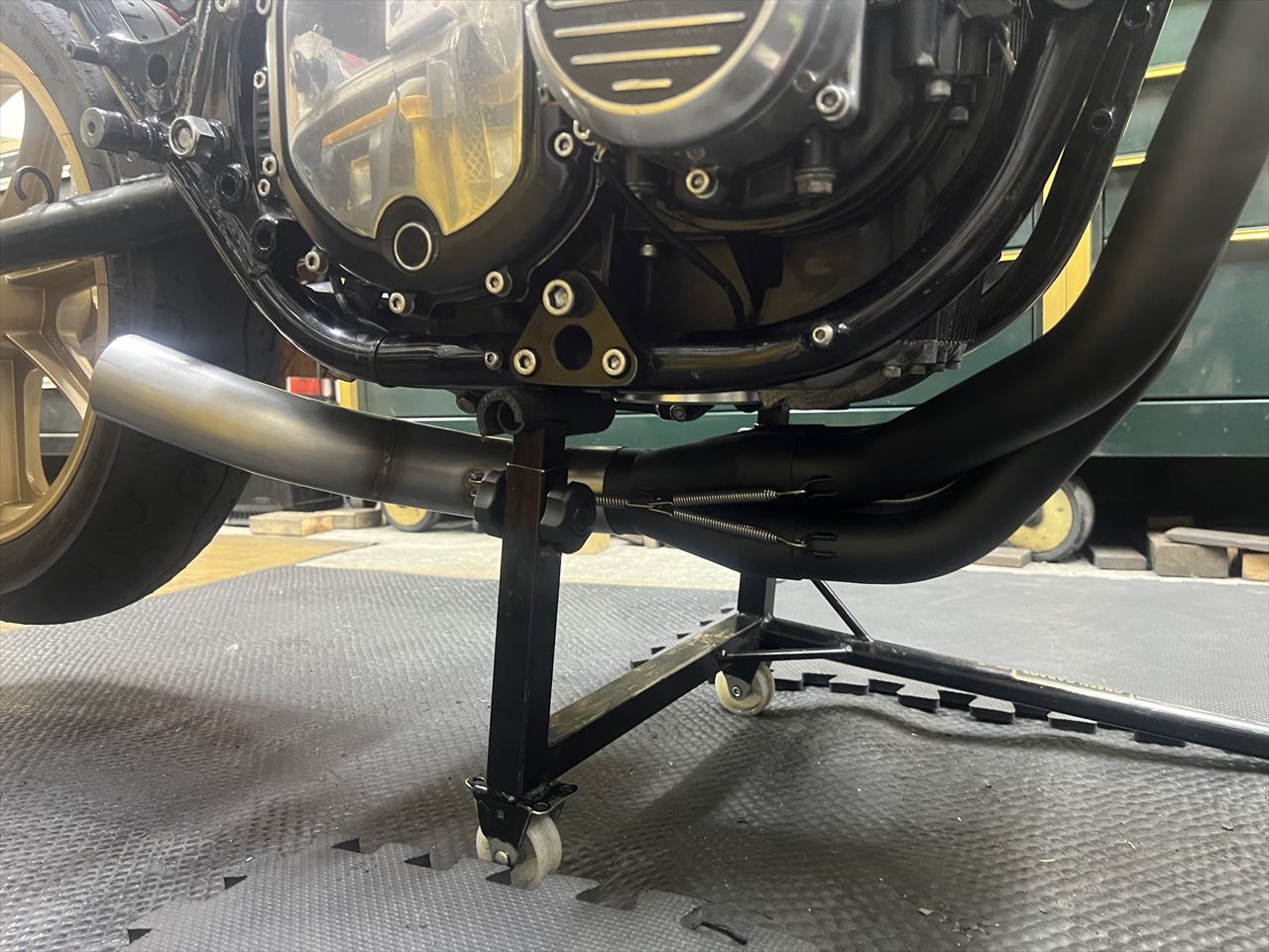 カチ上げのきつい既存のマフラーは変更することになりました。新しいマフラーはBL-FACTORY製カワサキワークス・アップ・ロングタイプを使用します。