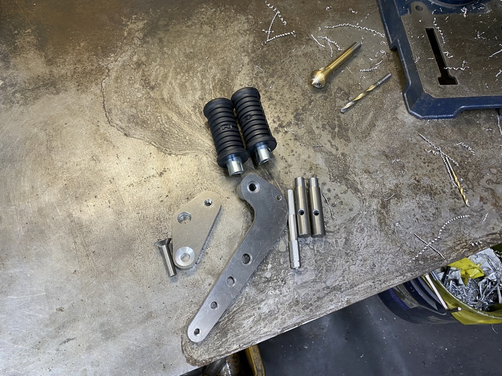 ワークスバックステップVer.1を製作します。主な部品構成はこんな感じで、AMAカワサキワークスのMk2のステップを模して製作した物です。