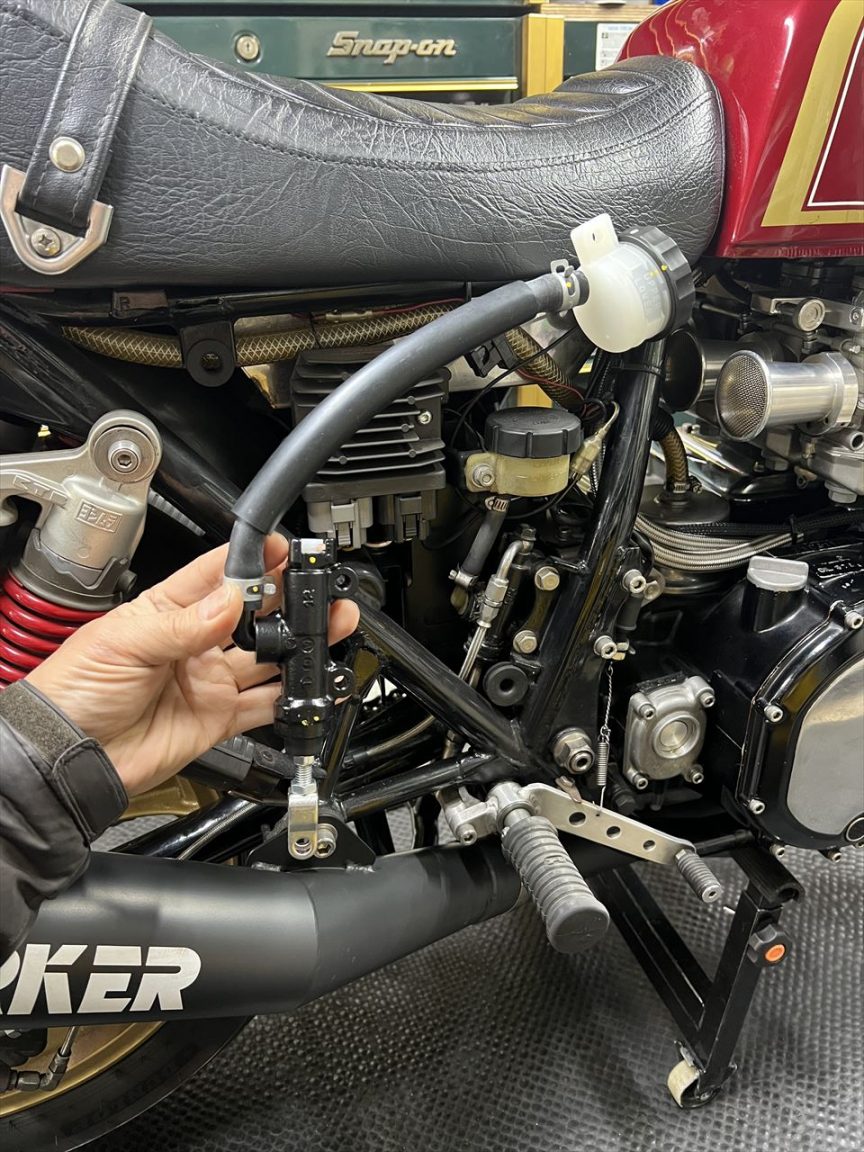 現状はノーマルマスターを使って弊社のバックステップを組んだ状態です。今回はマスターを純正流用で新品にします。