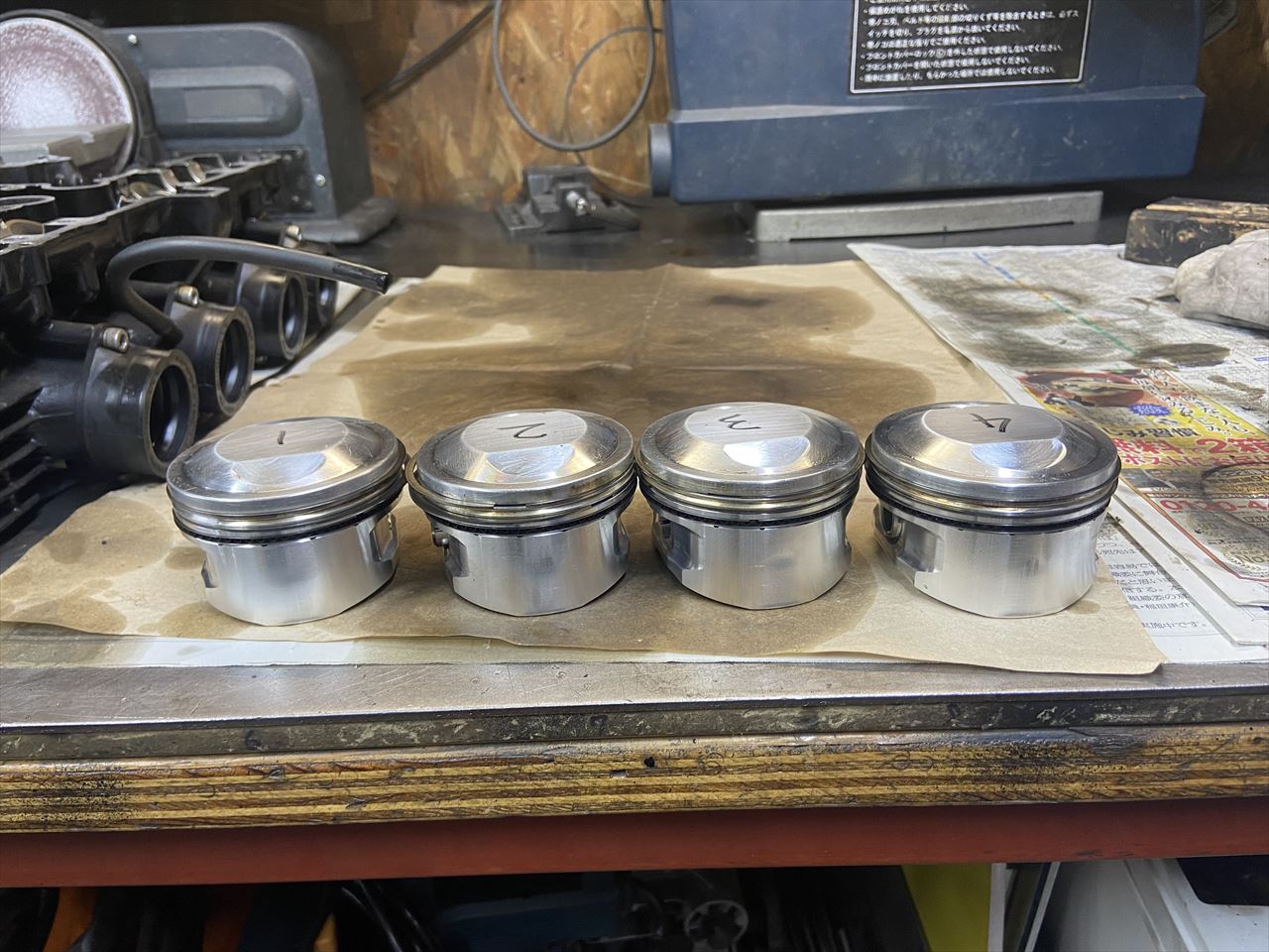 エンジンからのオイル漏れ修理のご依頼です。エンジンは2015年に弊社で改造したもので、φ75ミリJBピストンとWEBカムが入っています。オイル漏れのヶ所は、シリンダーベースのガスケット辺り、センターと両サイドからといったところです。