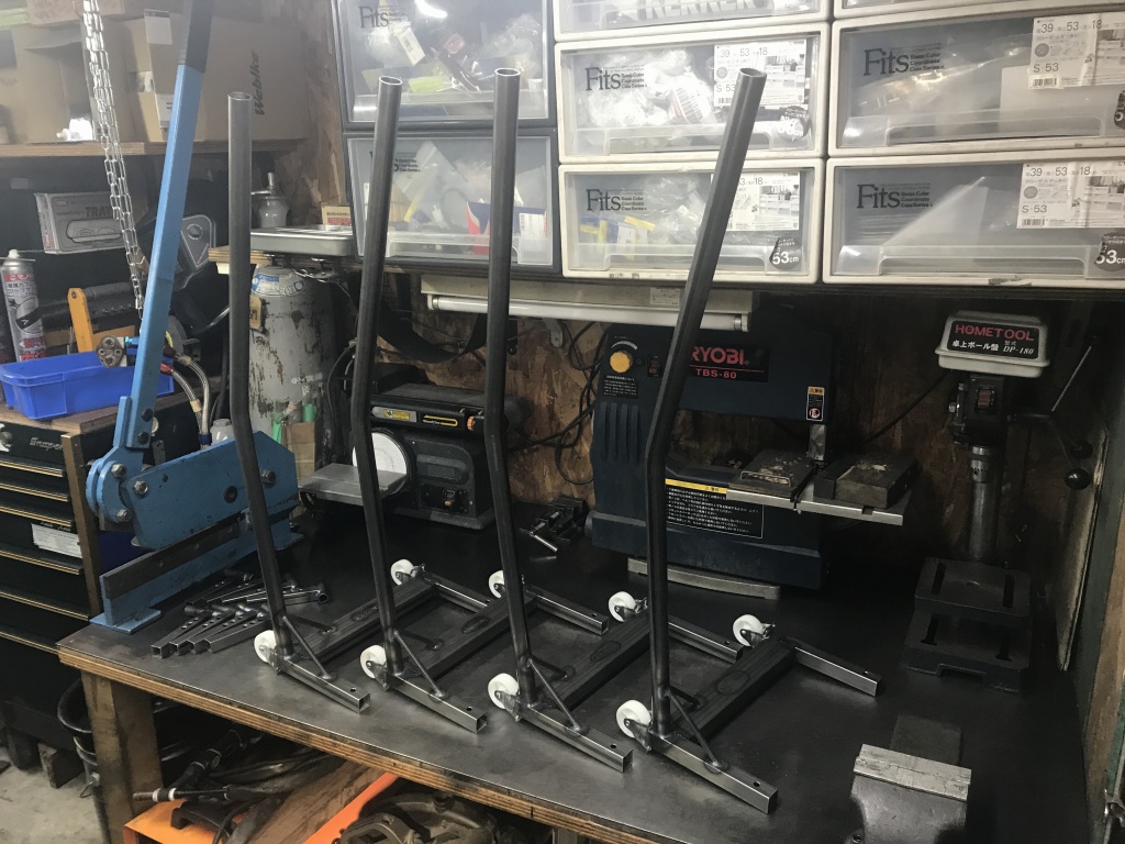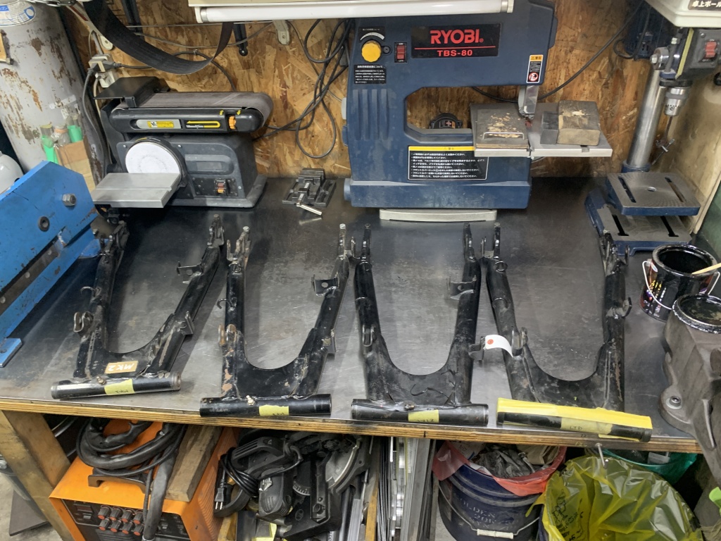ワークスタイプスイングアーム製作のご依頼があるので準備します。今回車両はZ1Bへの取り付けで、ストックの中から素材の候補を選びます。
