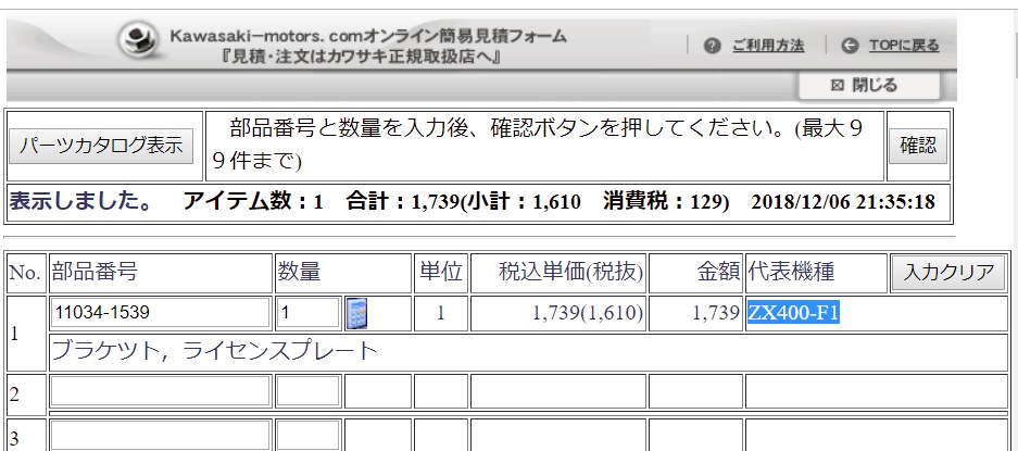投稿日: 2018年12月6日純正部品情報 鉄のナンバーブラケット FX1などのナンバーブラケットはスチールの立体整形されたもので、旧車にはとても似合うものです。 ほぼ同じものが、今日現在でもメーカー在庫有りなのでご紹介します。 お探しの方は無くなる前にお早めにゲットしてください。(^^) 部品番号 11034-1539 税抜き価格 1,610円 代表機種 ZX400-F1(GPX400R)