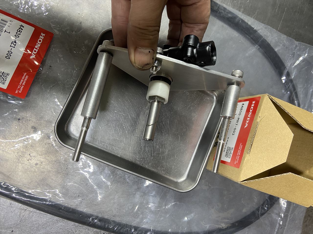 ご注文のあったZ1000Mk2用のスピードメーター取出しキットができたので、デモ車のZ1Rで取り付け確認します。画像のスプロケットカバーはお持ち込みいただいたものにケーブルを通す穴を開けてあります。