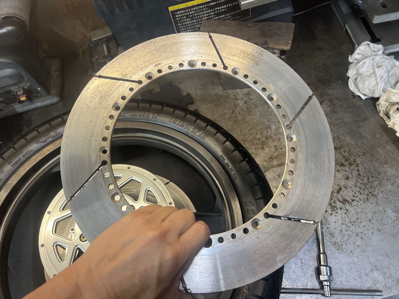 Z1000S1純正のダイマグホイールがあるのですが、入手時よりインナーローターが作り変えられています。なのでよりS1らしくするために弊社のS1レプリカインナーローターに変更します。
