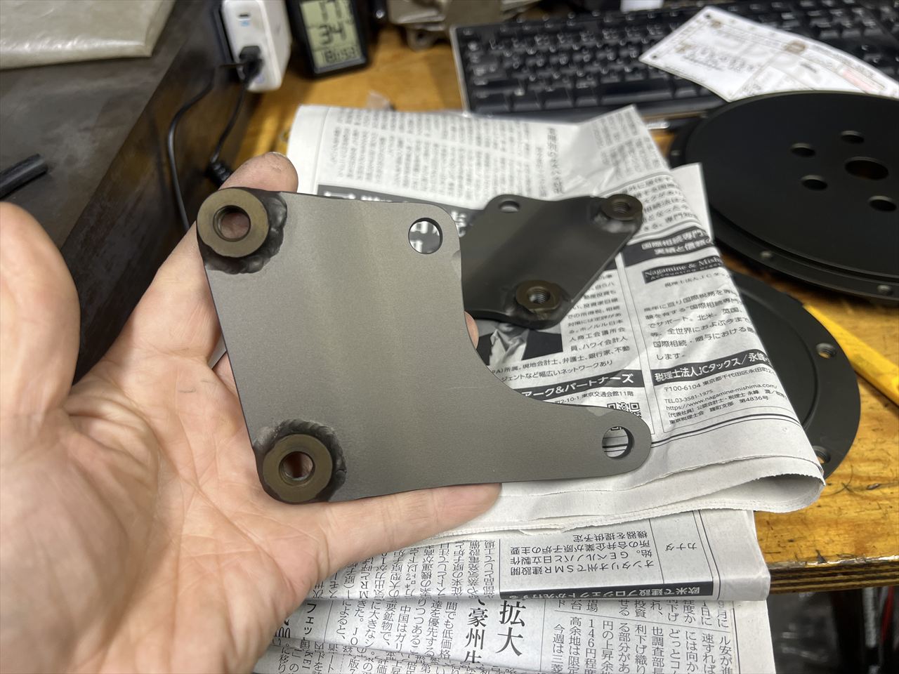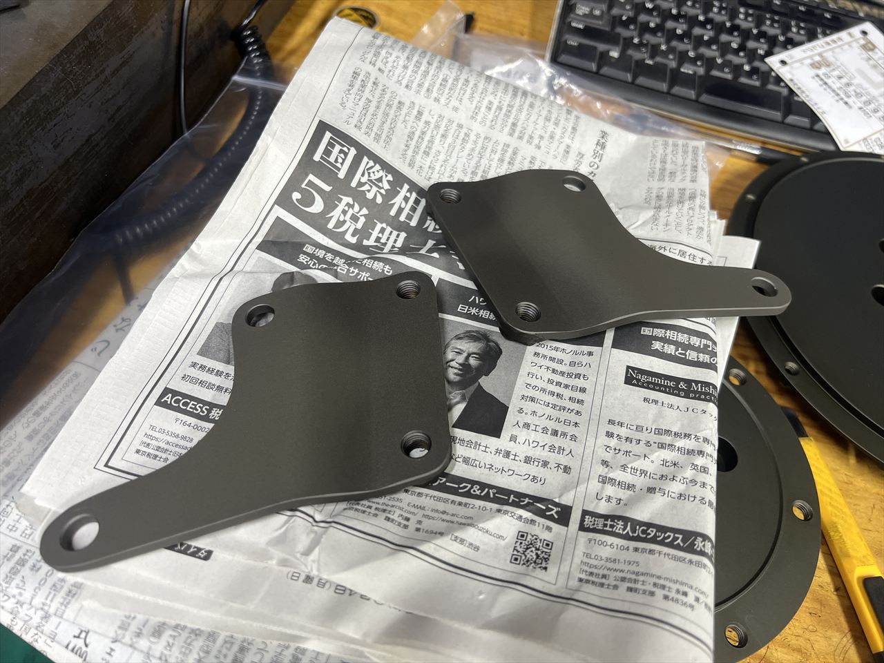 S1タイプのフロントキャリパーサポートのアルマイトが完成し戻ってきました。先日板を曲げて製作していたものです。