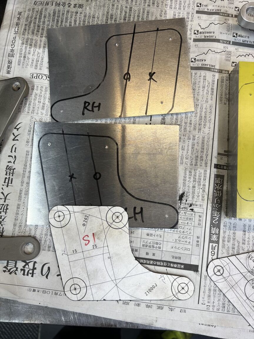 2種類のS1用キャリパーサポート製作のご依頼です。先ずはノーマルS1と同形状のプレートタイプを製作します。材料は航空機などにも使用される高強度のアルミ合金7N01の5ミリ厚板です。