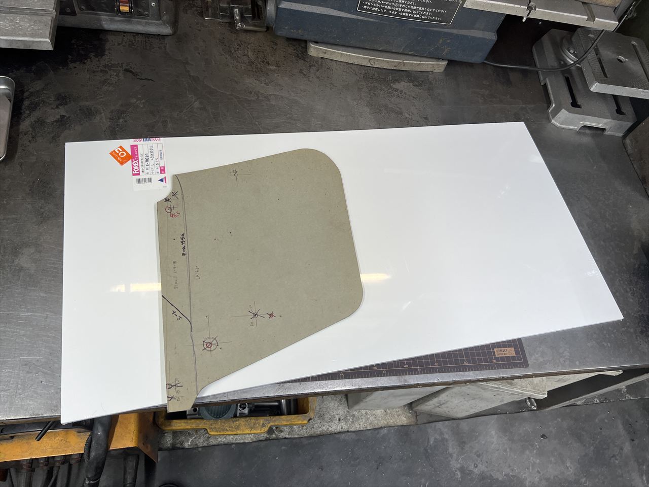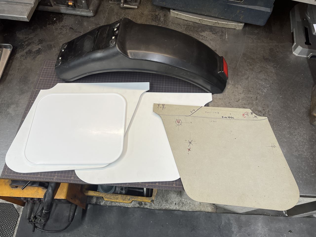 ワークスタイプのリヤゼッケンプレートを作ります。素材は発泡塩ビの5ミリ厚板です。