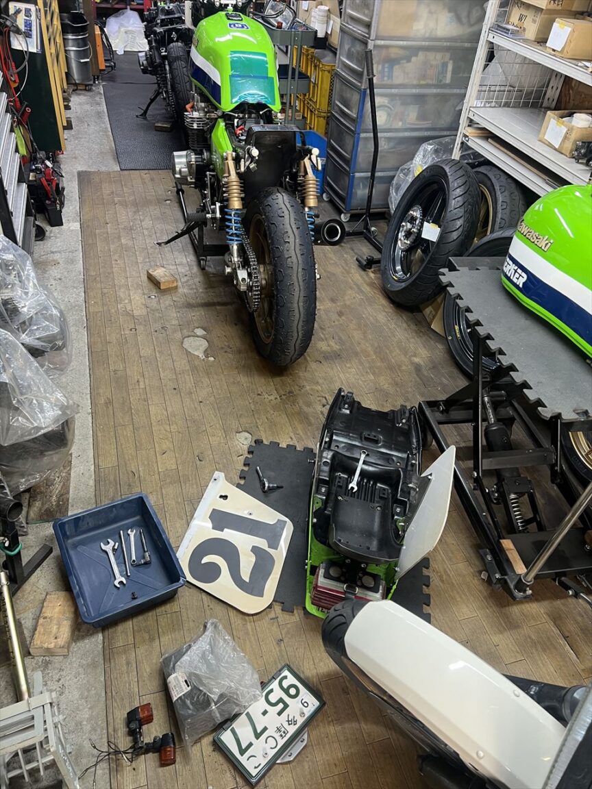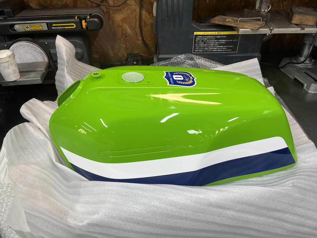 FRPタンクをレーサーに付けてみました。細部にわたってノーマルタンクとそっくりでほとんど見分けが付きませんね。