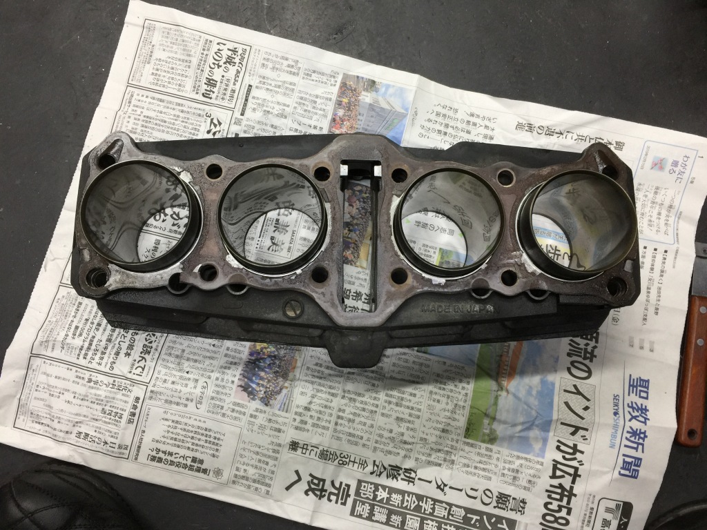 かなり硬化して張り付いたガスケットなので、1時間ほどかけてガスケット剥がし終了。特に問題無いのでそのまま下取りへ。ピストンセットは近日入荷します。