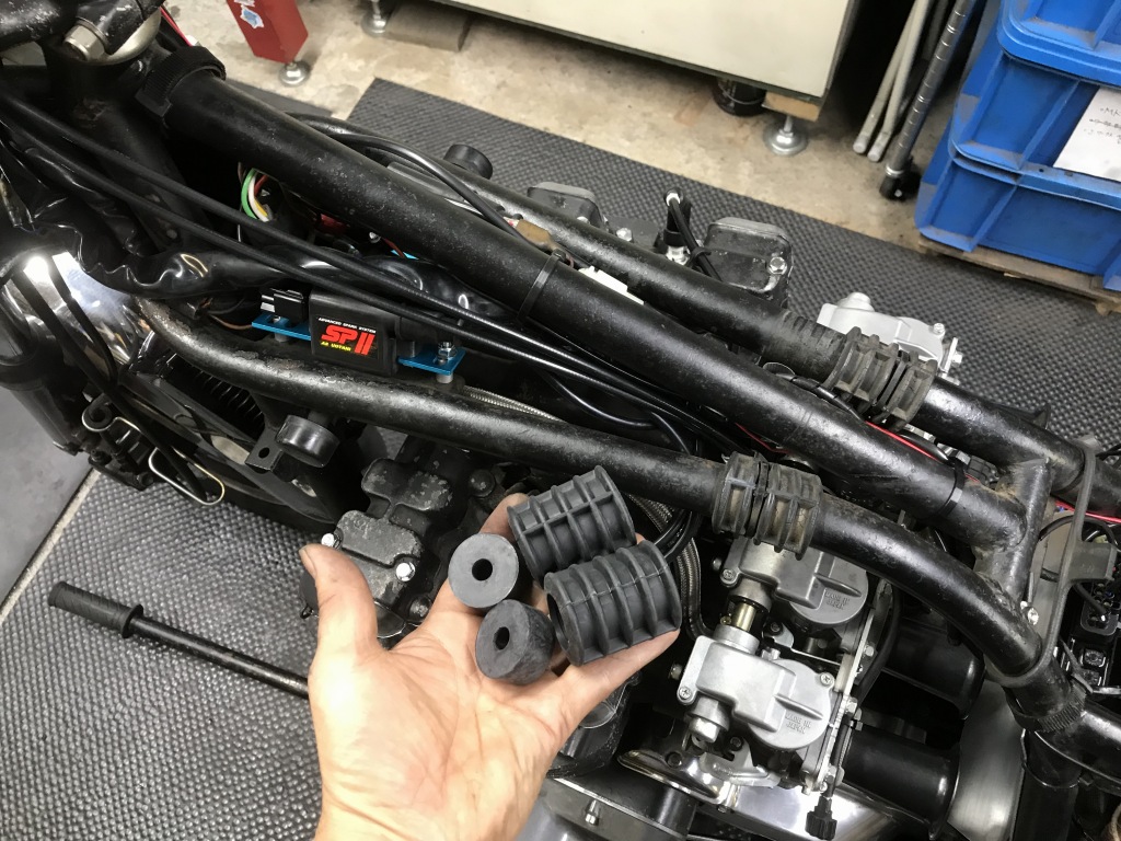ウオタニSP2の取り付けが終わりました。タンクのダンパーラバーは劣化しているので交換します。