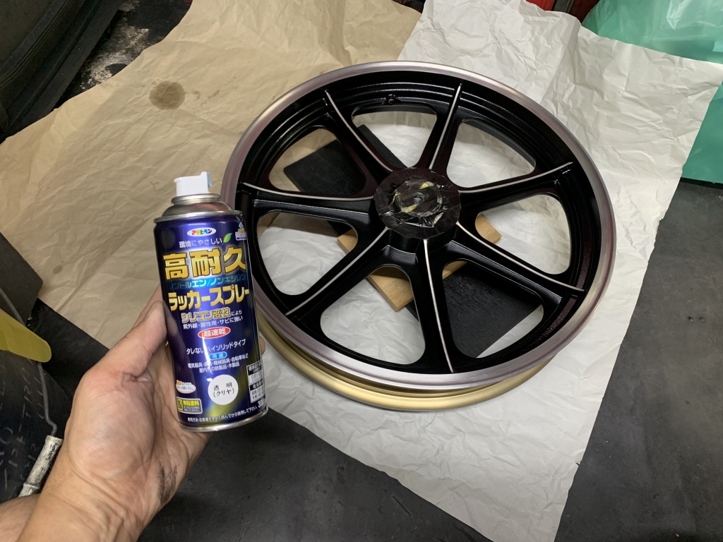 クリア塗料が入荷したので仕上げの塗装をします。この「高耐久ラッカースプレー」は、シリコン変性塗料を使っており、速乾でお手軽の上、乾くとかなり強靭な塗膜なのでお勧めです。