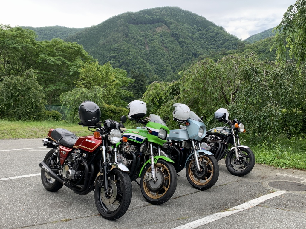 本日の奥多摩朝練はこちらの4台で走行。梅雨のさなかでしたが事前の予報通り今日は曇り時々晴れと、なかなかのツーリング日和でした。