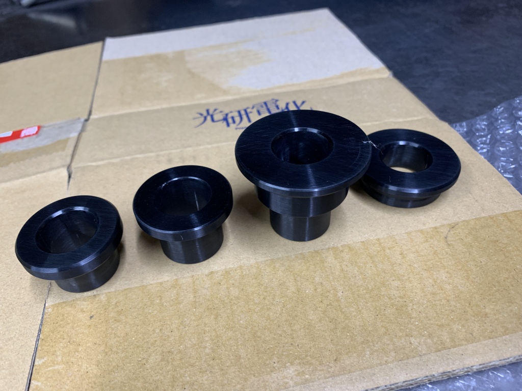 カラーのアルマイトが完成しました。これで今回の一連の製作物は完成です。アルマイトは日光の紫外線に当たると退色しますが、できるだけ退色が少ないと見込んで光研(コーケン)さんにアルマイトを依頼しています。