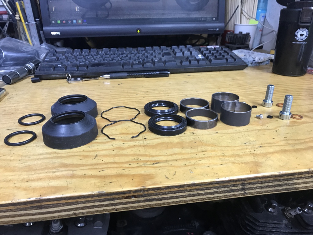 フロントフォークの交換部品はこちら。消耗部品は現在もここまで揃います。