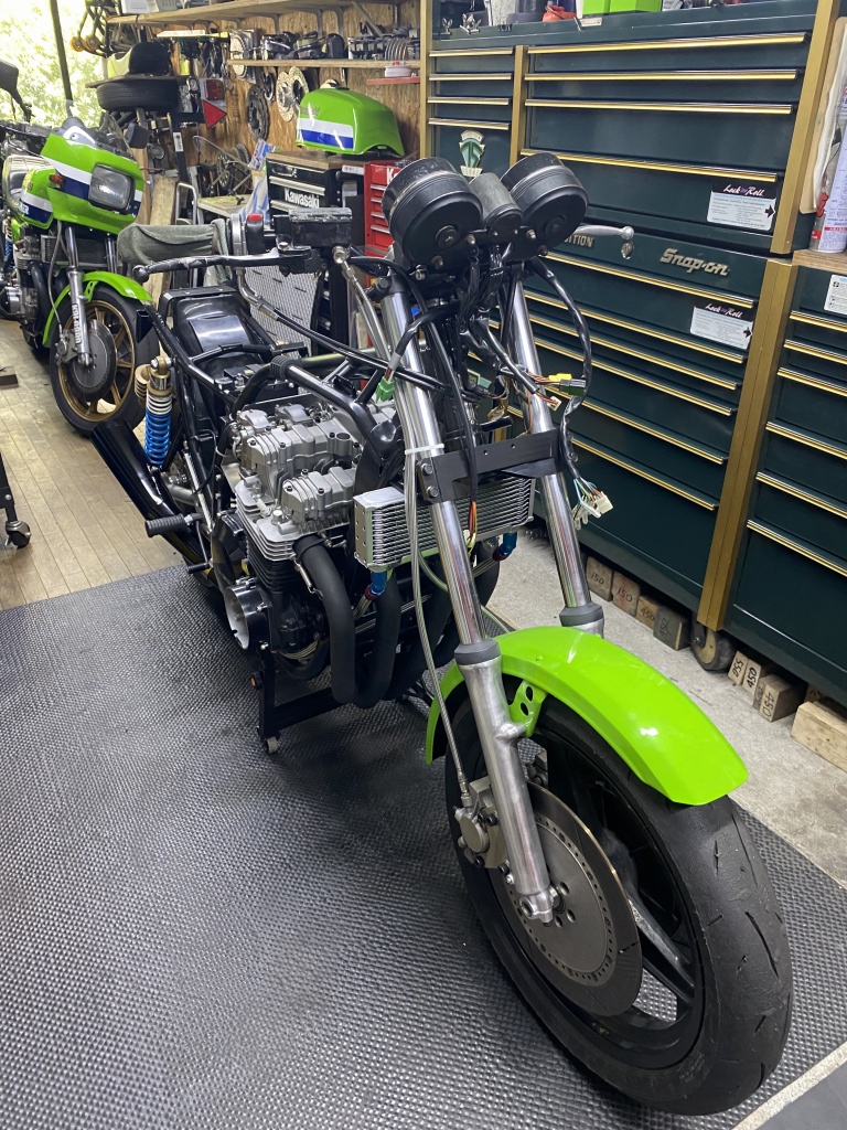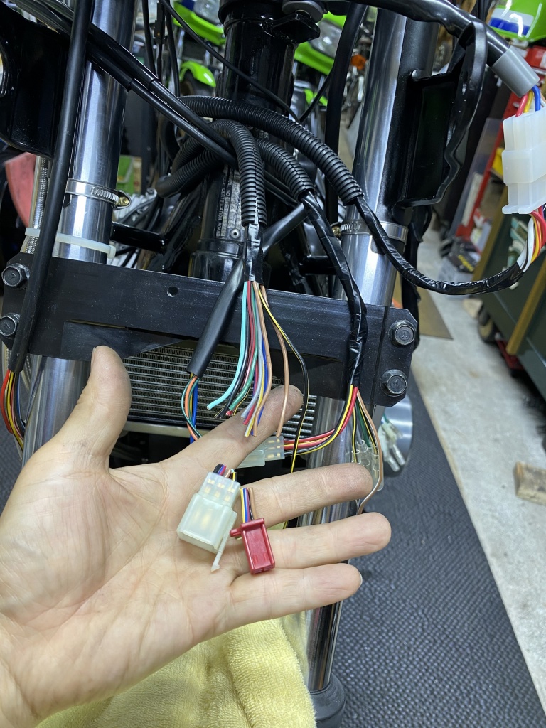メーターはZ1000R1の丸メーターに変更、メインハーネスはZ1000R2純正新品を使用し、メーター周りは大幅に改造して丸メーター側に合わせます。