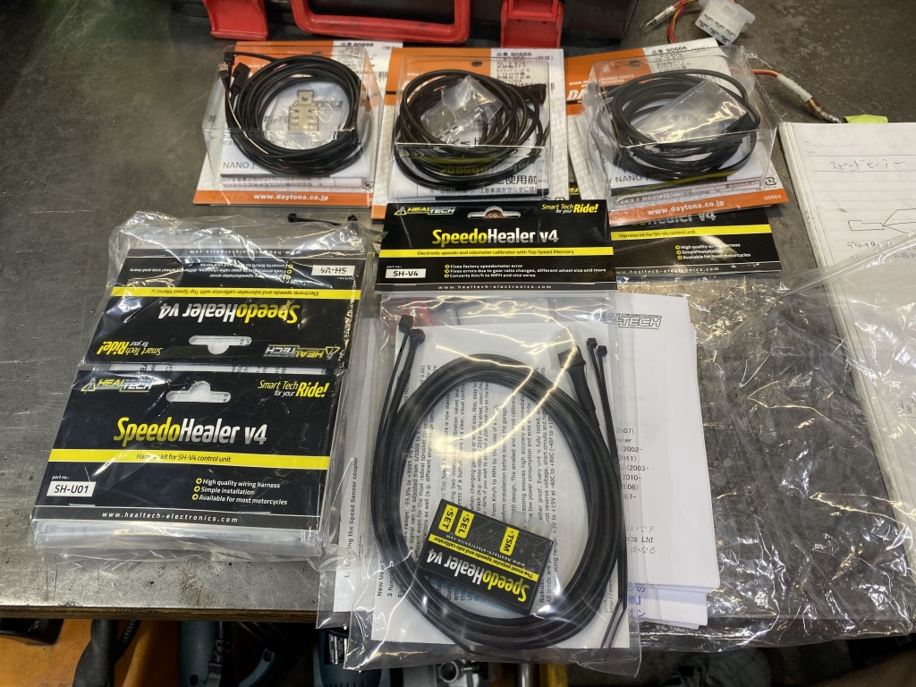 デイトナのセンサーとスピードヒーラーのハーネスを結線します。