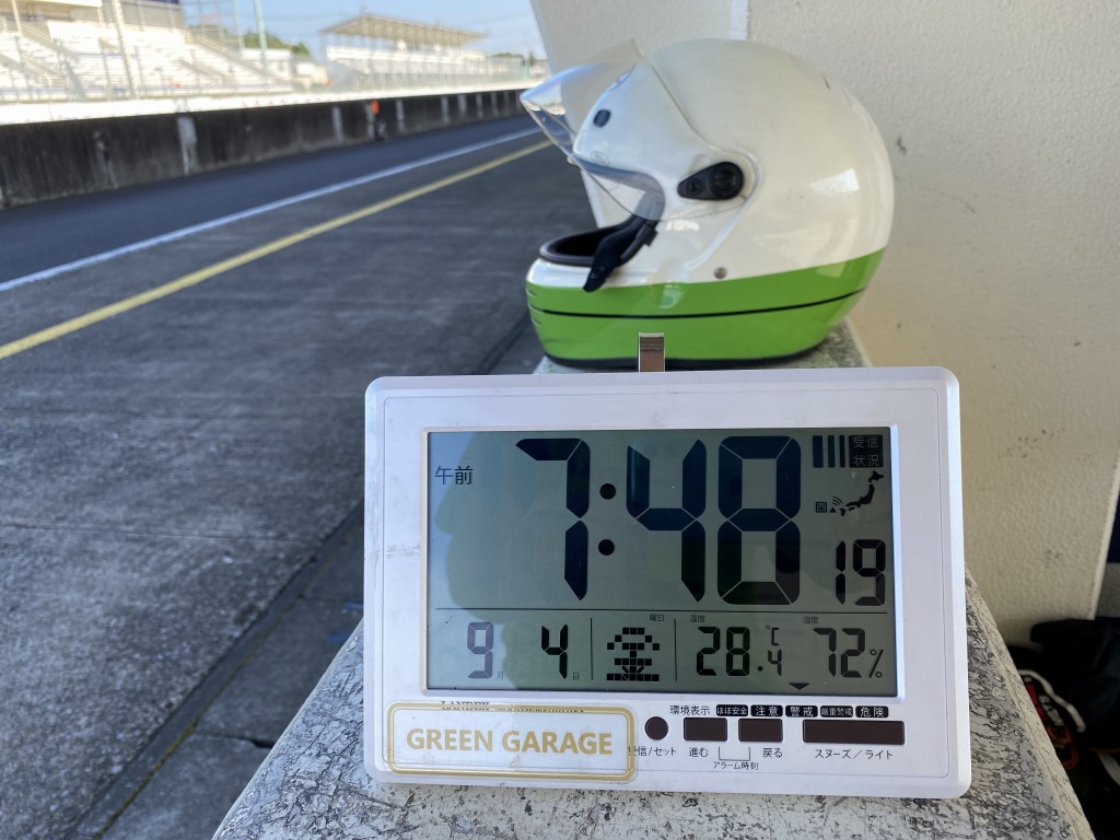 涼しいうちに走行をと8時からの枠を予約していましたが、気温はぐんぐん上がり既に28℃、湿度は70%以上と過酷な条件での走行となりました。
