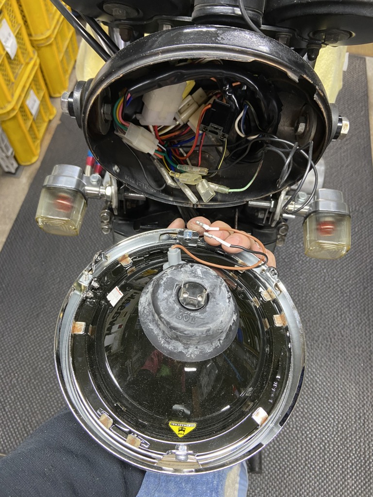 投稿日: 2020年12月23日2020年12月23日Z1000J1 A.H様 イグニッションスイッチ交換 ONの位置でもキーが抜けてしまう状態のイグニッションスイッチ、代替の純正部品があるうちにということで交換します。使用するのはエリミネーター250の純正品です。部品番号27005-5078 コネクターにアクセスするため、ヘッドライトを外します。ポジションランプのギボシはサイズが細く、全くはまっていませんでした。 “Z1000J1 A.H様 イグニッションスイッチ交換” の続きを読む