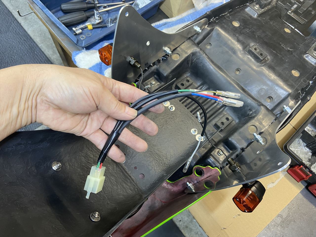 投稿日: 2021年8月1日2021年8月1日Z1000J2 S1化計画 外装の暫定完成 [U.S様] テールカウル一体型のシート回りを仮組し、シート側のサブハーネスを製作します。 サブハーネスやその他のテール周りの部品を全て組み込み確認します。 “Z1000J2 S1化計画 外装の暫定完成 [U.S様]” の続きを読む